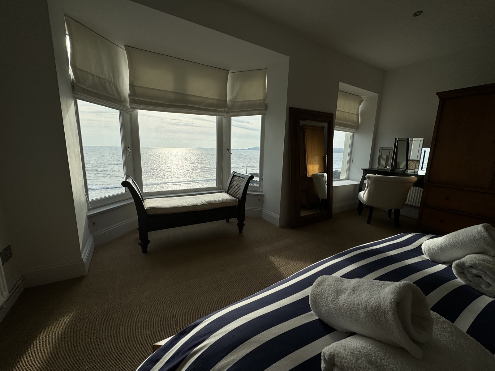 Outside, there is the lawn to the rear with levelled garden, patio area with garden furniture. The front of the house has a glass balcony with plenty of outdoor furniture and beautiful sea views to enjoy a glass of wine in the evening.