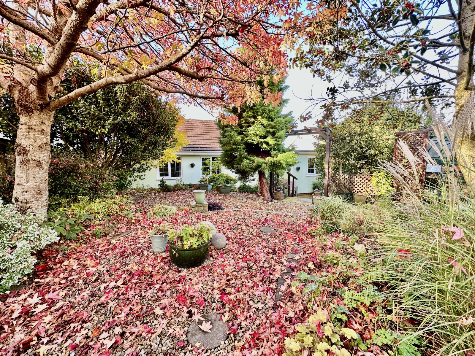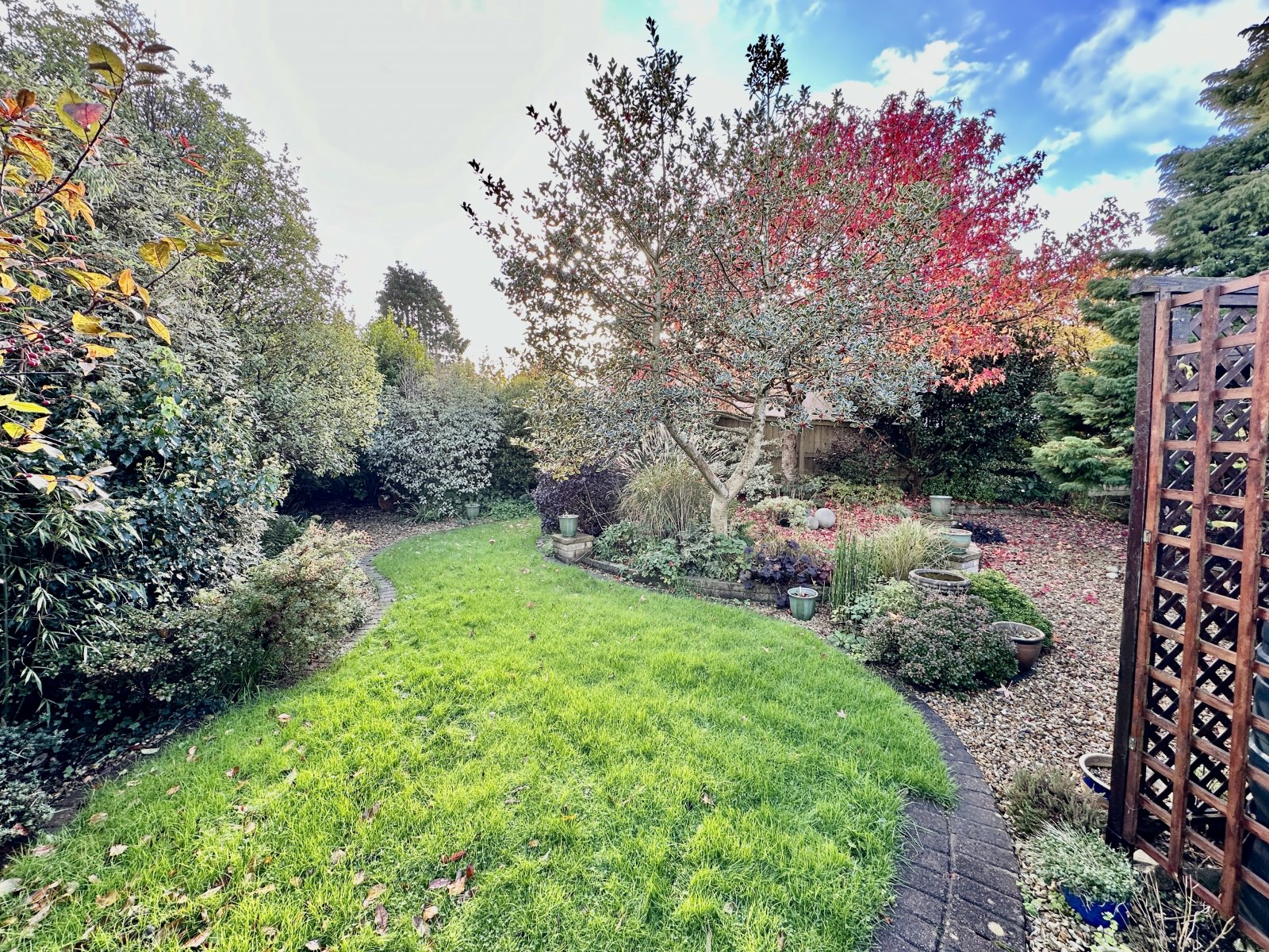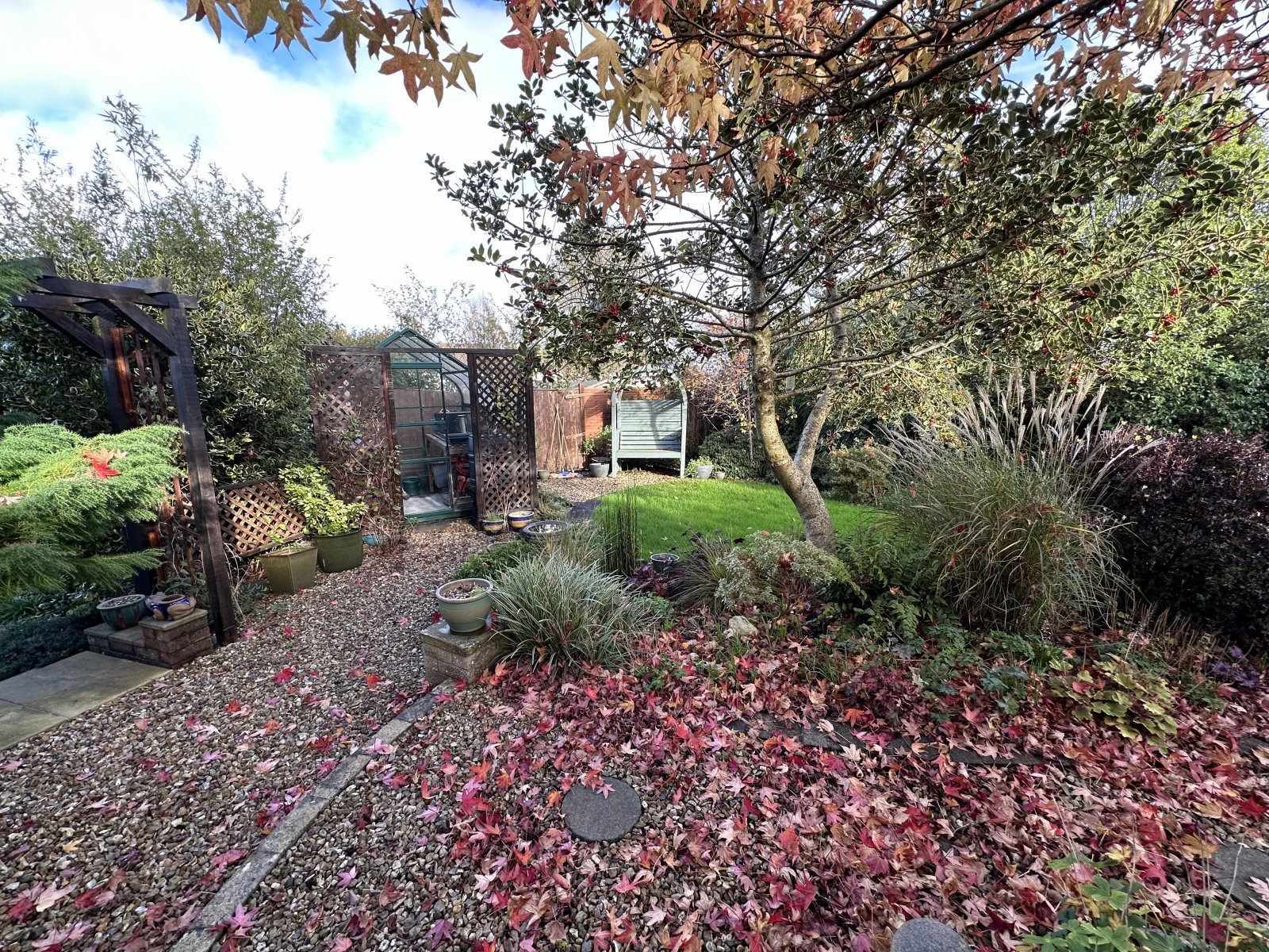 The previous owners were very keen gardeners & this can be seen in the rear garden with peaceful layout & design featuring mature trees, lawn & green house. The front garden has a driveway with additional parking used on the gravel area.