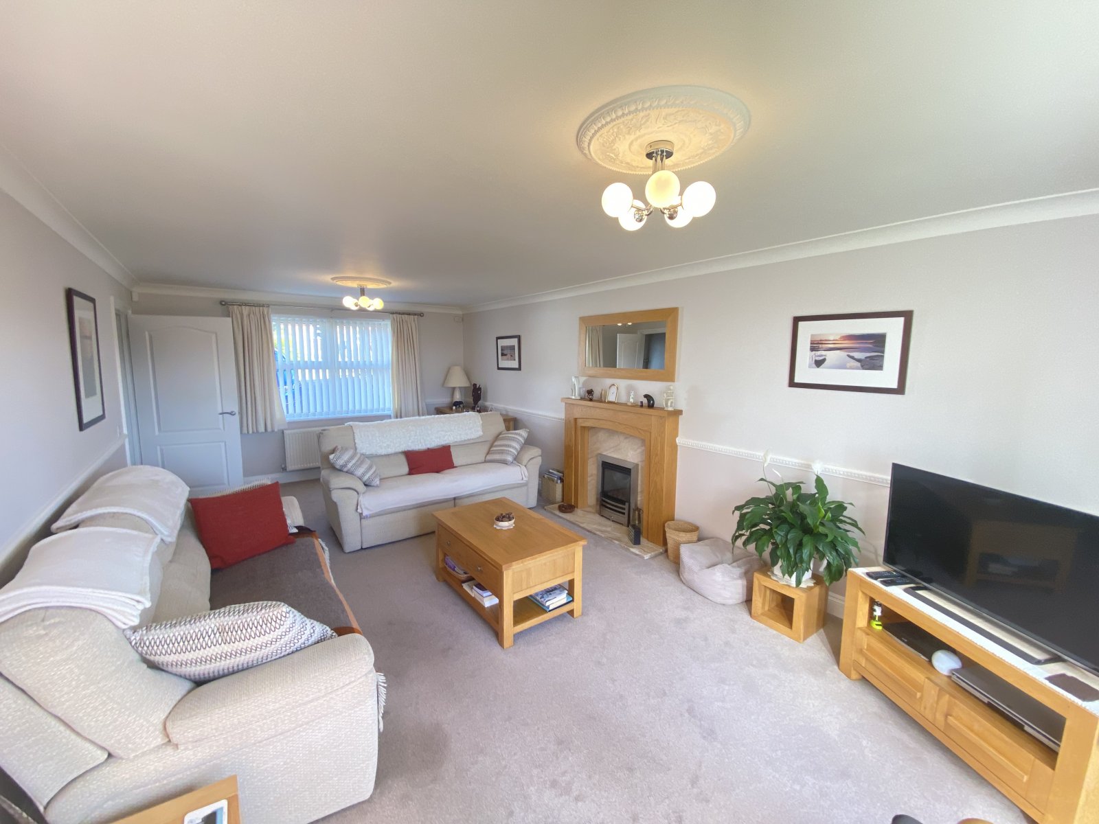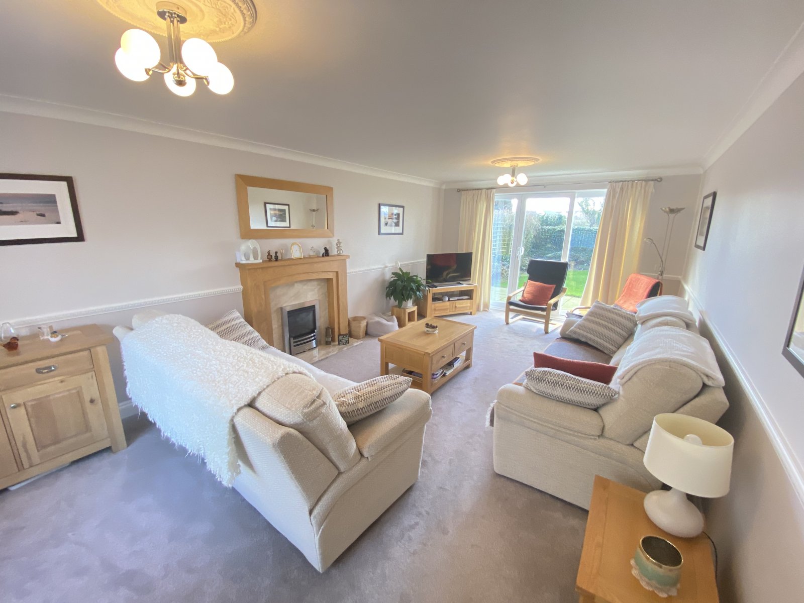 Carpeted, 2 ceiling lights, 2 radiators, uPVC window to fore, uPVC doors to rear garden, fireplace, tv point.