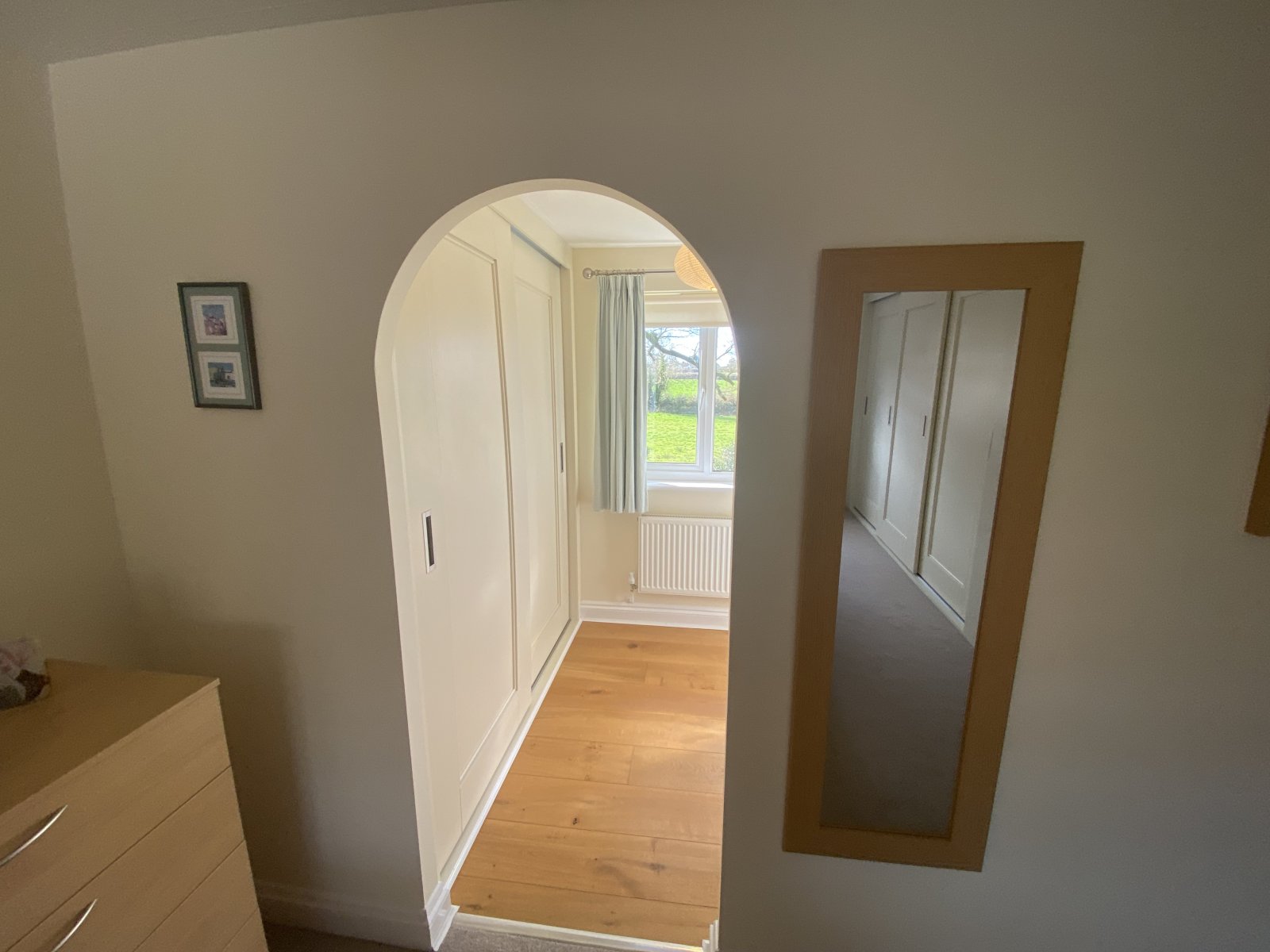 Carpeted, ceiling light, uPVC window to fore, tv and telephone point, built in wardrobes, archway to dressing room.