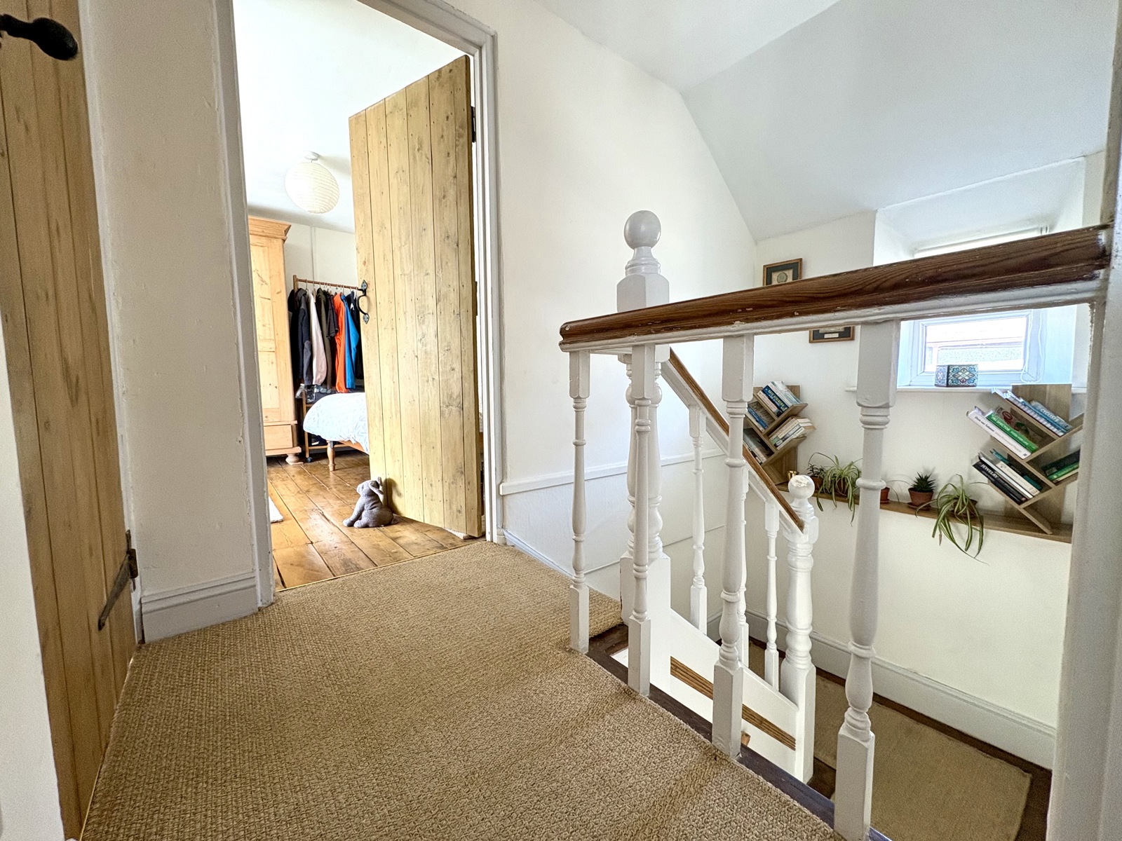 Small double glazed window, fitted carpet, access to loft space, doors to bedrooms