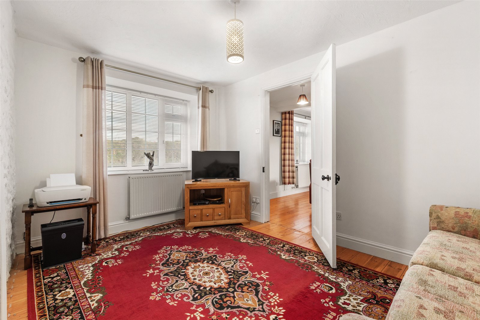 From the lounge, access given to an additional living area which could be utilised as an annex bedroom if so required. Comprising of fireplace feature, wood flooring, spotlighting, radiator, uPVC double-glazed window to fore and access to;