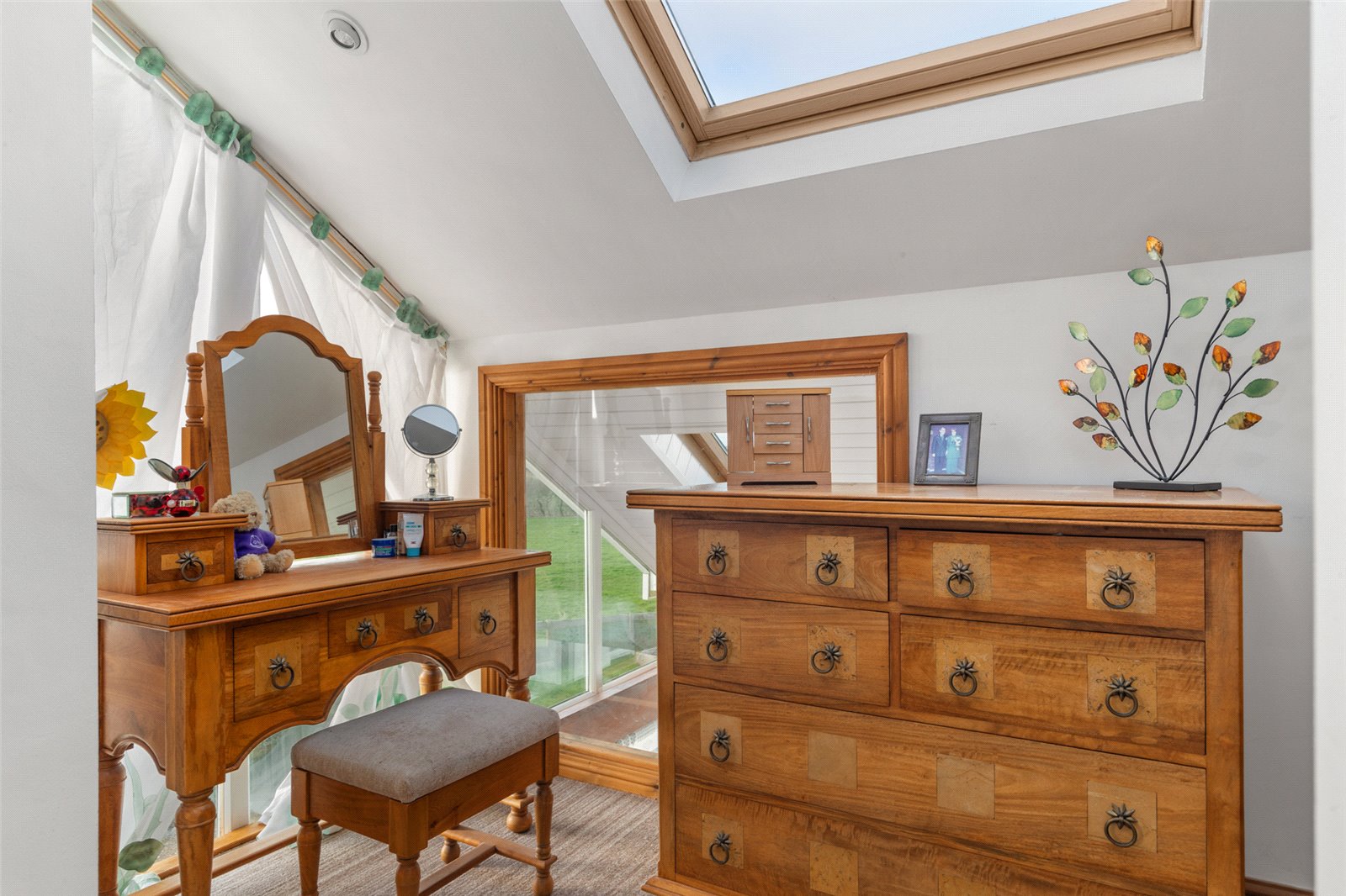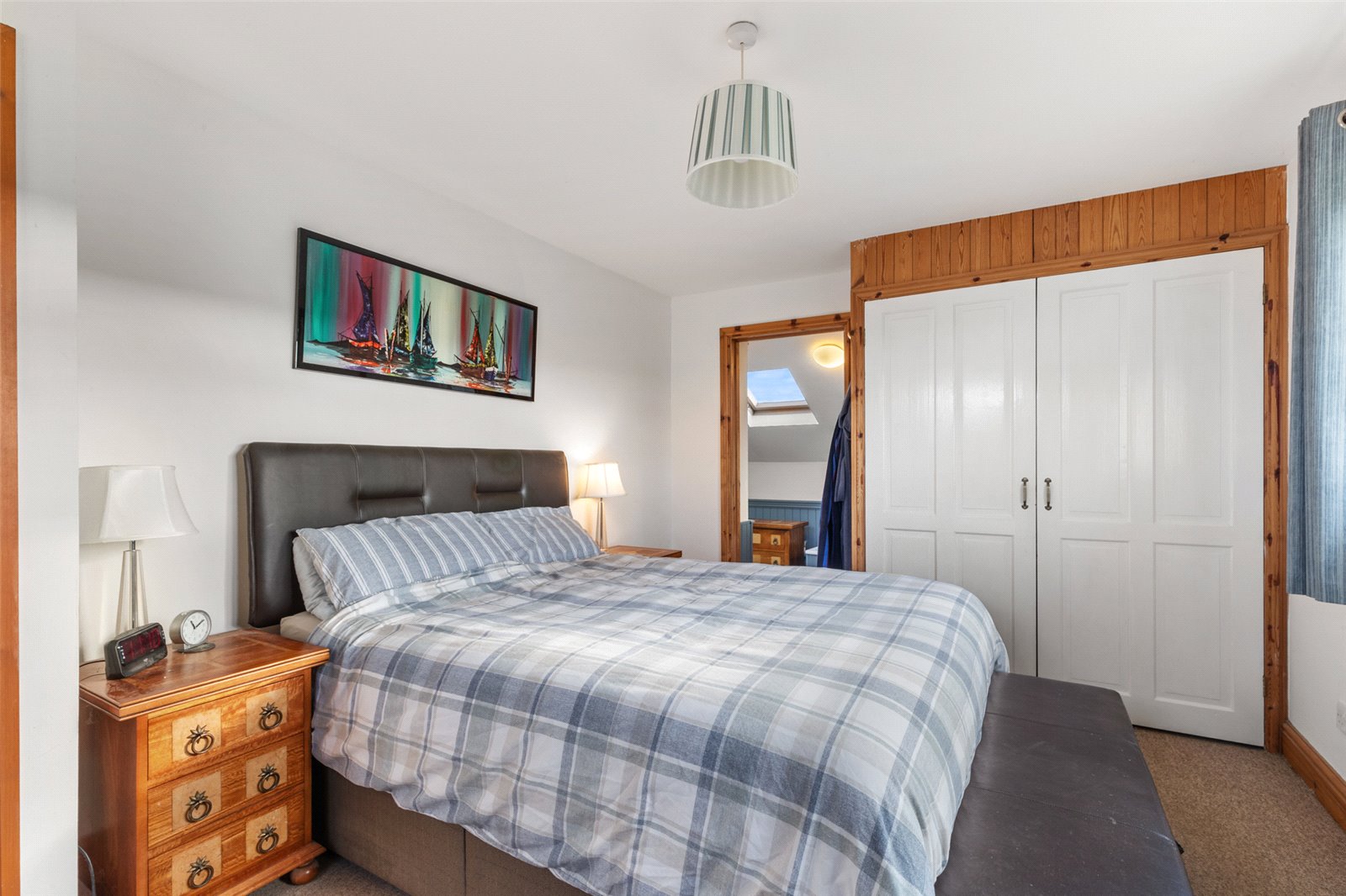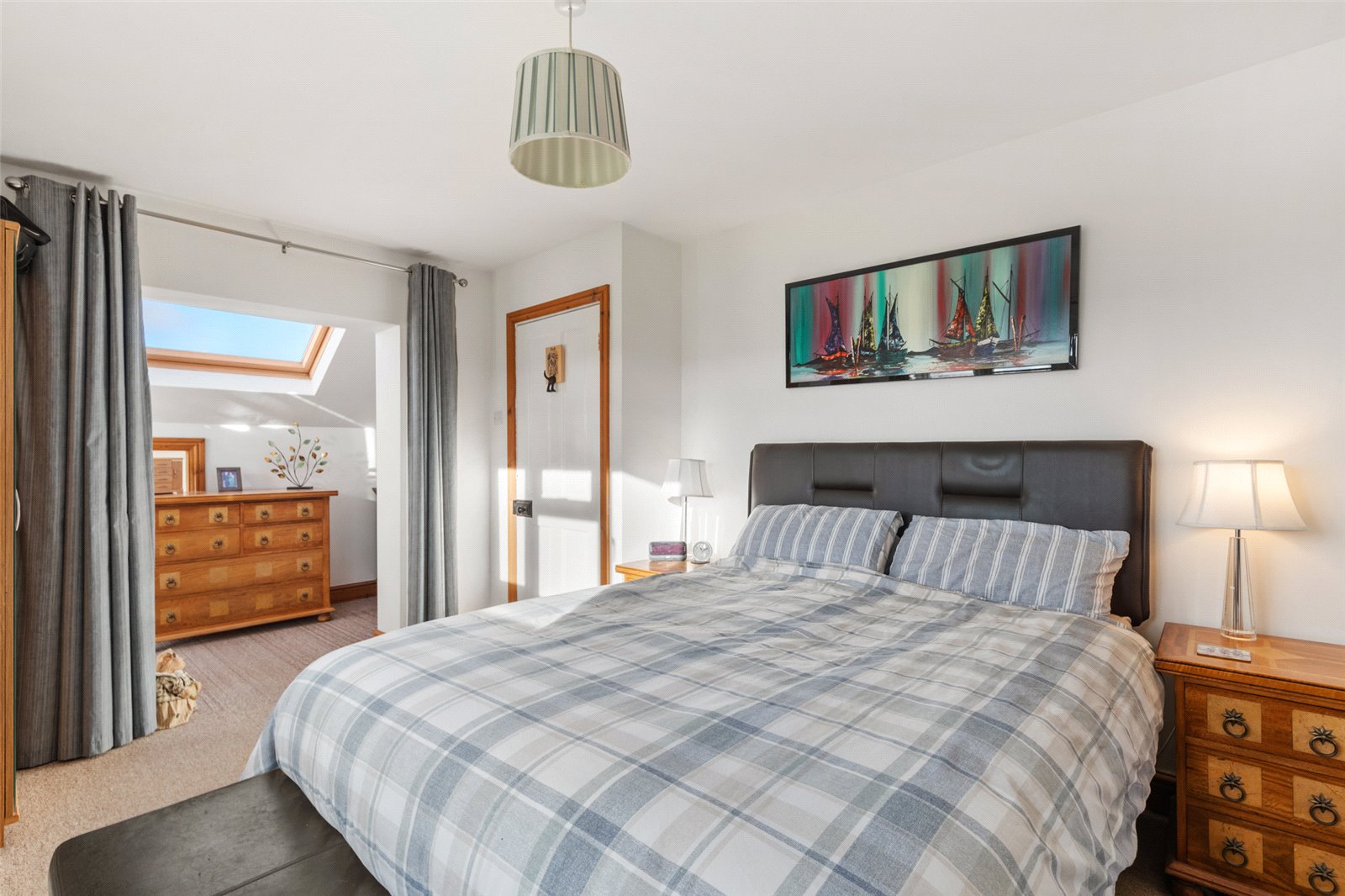 Useful dressing area, benefitting from carpeted flooring, Velux double-glazed window and spotlighting.