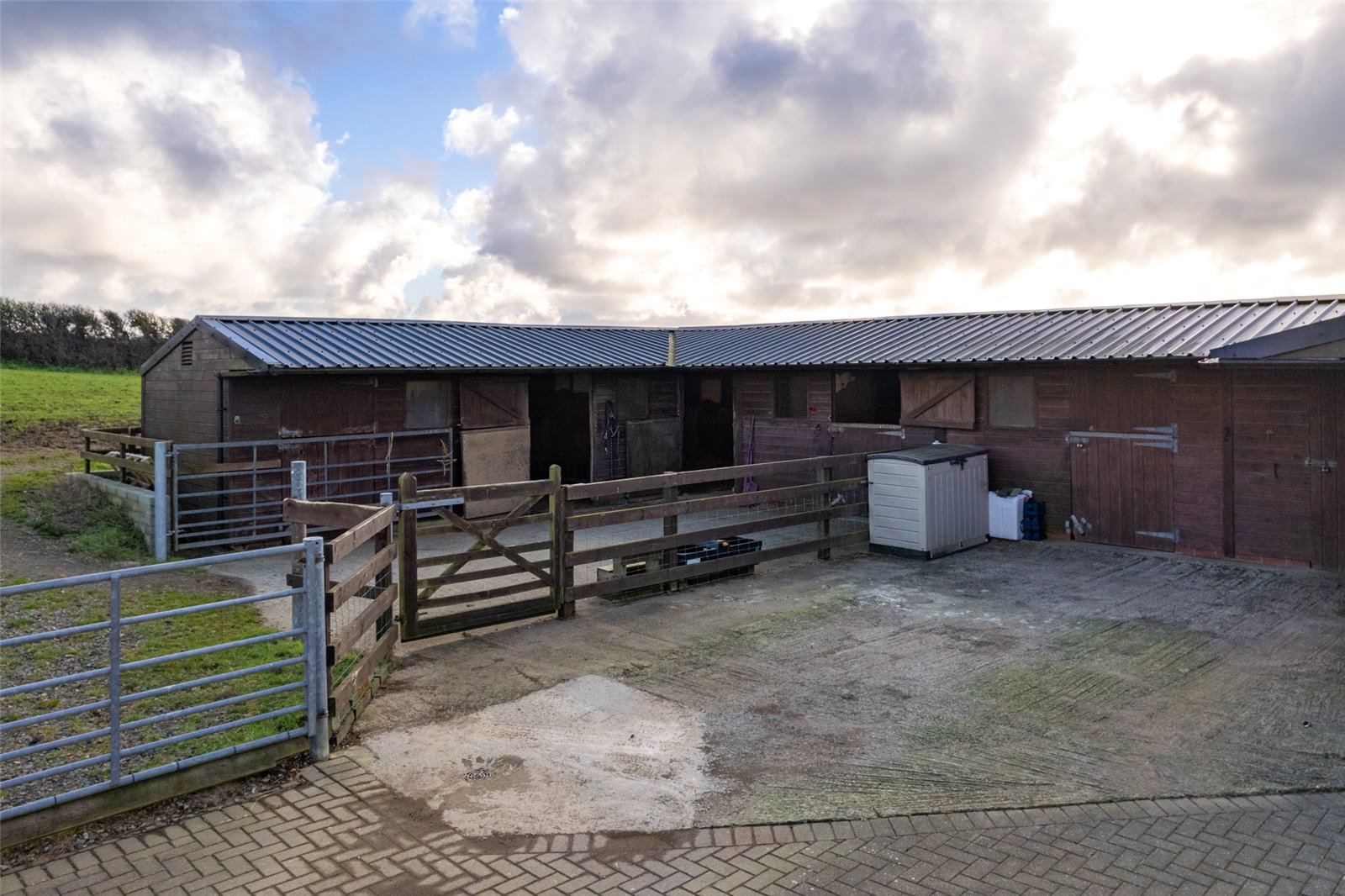 The property has advanced equestrian facilities for the new vendor's personal use. There are five main stables, with an adjoining tak room and a tractor shed to the rear. Lighting, mains sockets and water is connected.
