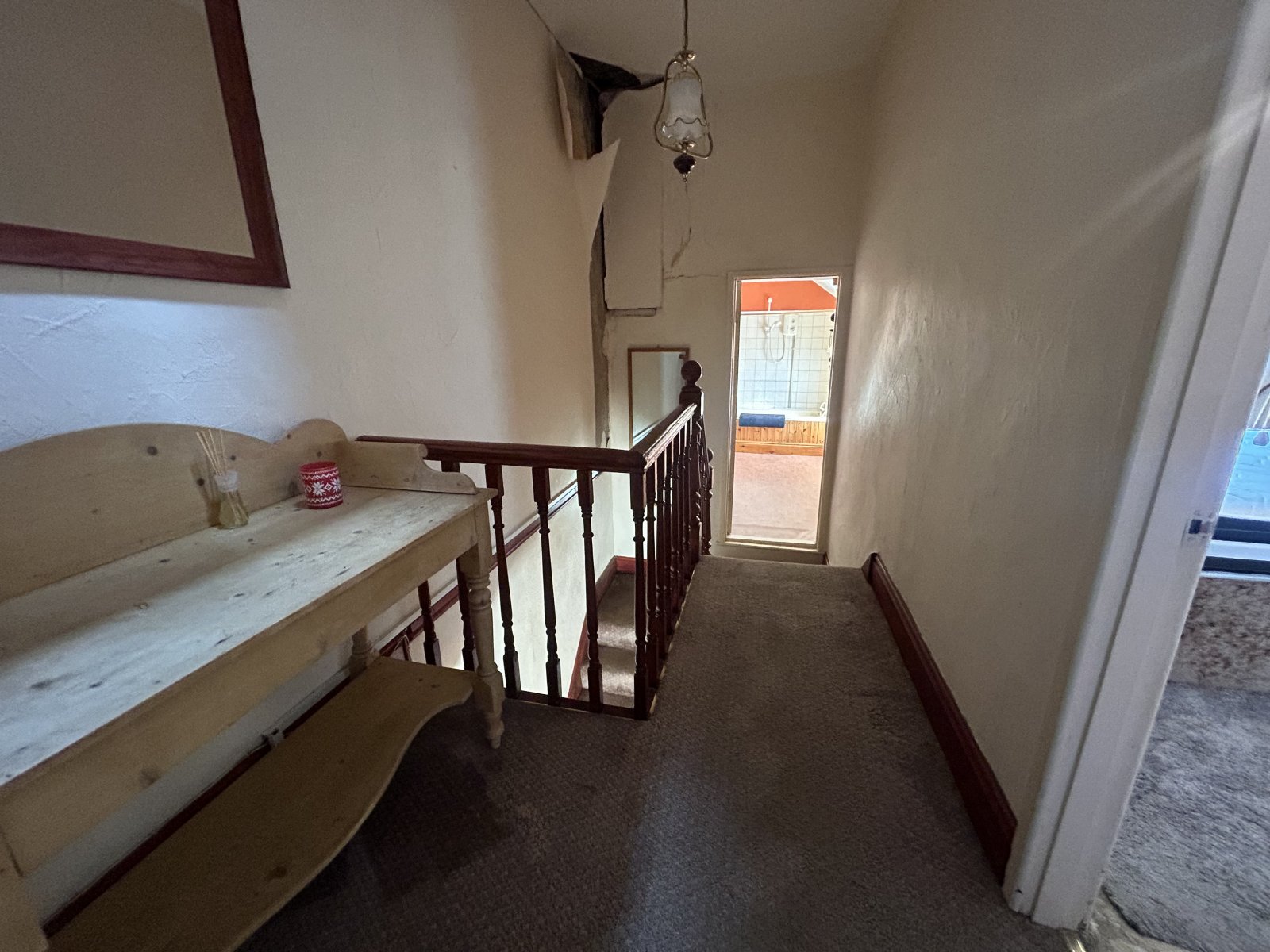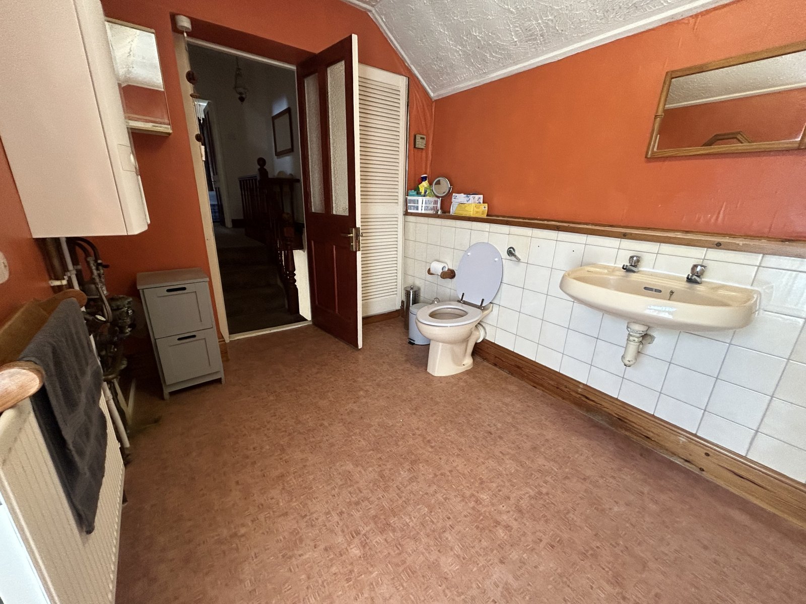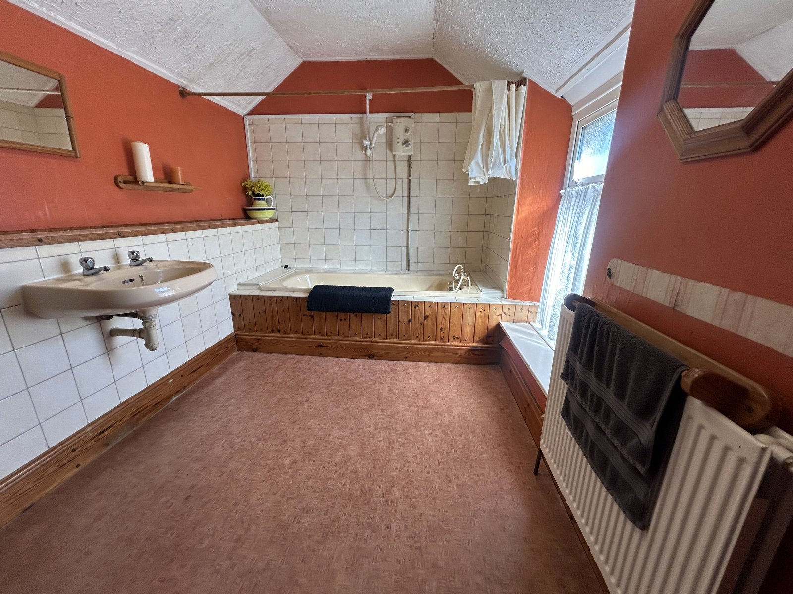 Upstairs, there are two well-proportioned bedrooms, each offering flexibility for various layouts. The family bathroom is also located on this floor and, like the rest of the property, presents an opportunity for renovation to suit individual preferences.
