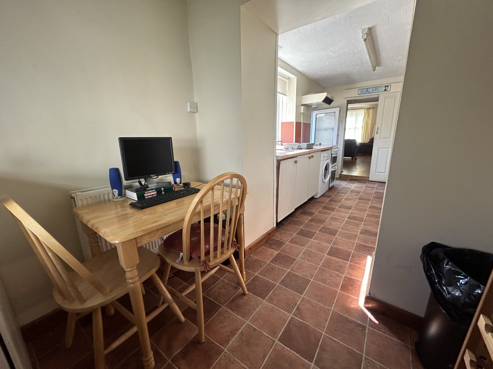 Upon entering, you are welcomed into a generous reception room, providing ample space for both living and dining areas. Large windows allow natural light to fill the space, creating a bright and airy atmosphere. The kitchen/breakfast room, positioned at the rear of the property, offers plenty of scope for modernization and could become the heart of the home with some thoughtful updates.