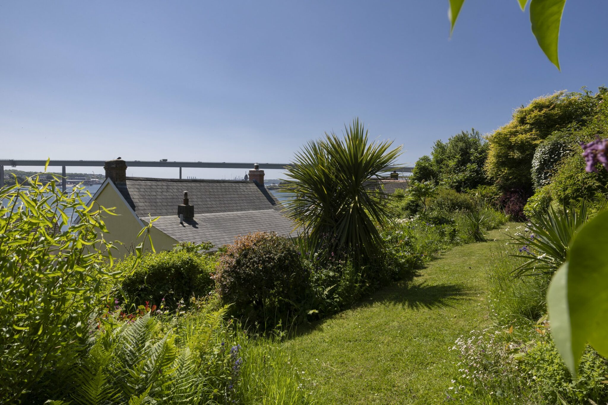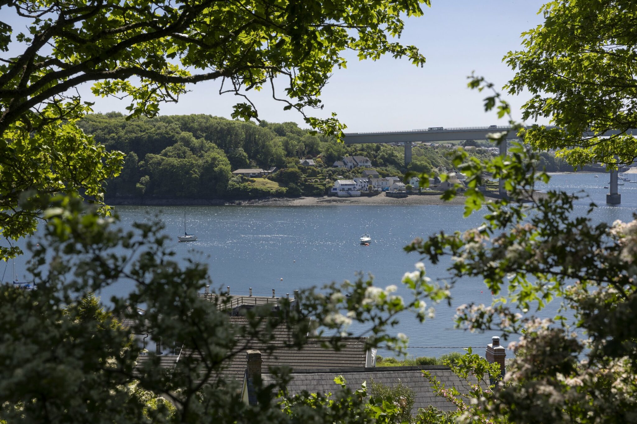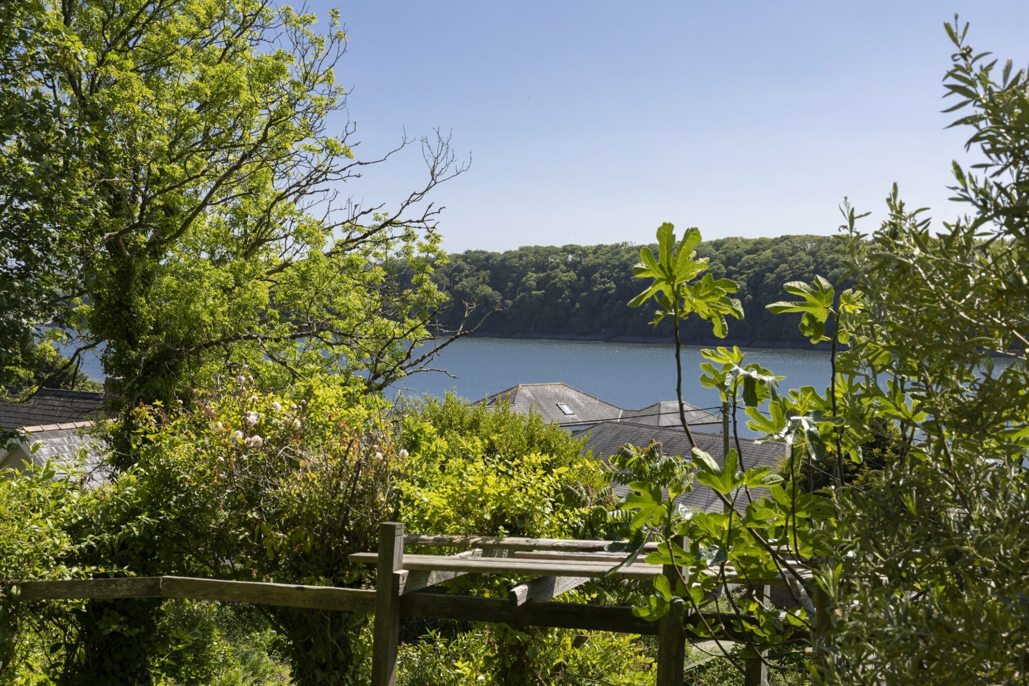 To the rear and side of the property then you will start to notice the terraced Garden starts to form. The bottom terrace is mainly laid to lawn with colourful flower beds and a wildlife pond with steps leading to the second terrace. Here you will find the kitchen garden the green house and the feature pergola with the most fantastic roses trailing alongside the honeysuckle, jasmine and grape vine which all knit together and make for the most wonderful scene at the time of year. The third terrace is where you will start to see the woodland working itself into the Garden with a further pond area, wild flowers everywhere and established flowers such as the rhododendron, camellia, and hydrangeas, which all back onto the countryside fields behind and the bluebell woods which is a site to see when in full bloom. The third tier also has seating areas to sit and enjoy the elevated views across the whole of the Cleddau River. The view stretches so far you can see the open mouth of the river which provides direct access straight over to Ireland which can be accessed via the daily ferry which runs twice a day. To the top is also a storage shed which is the ideal location for storing wood throughout the year to keep the fire lit through the winter months.