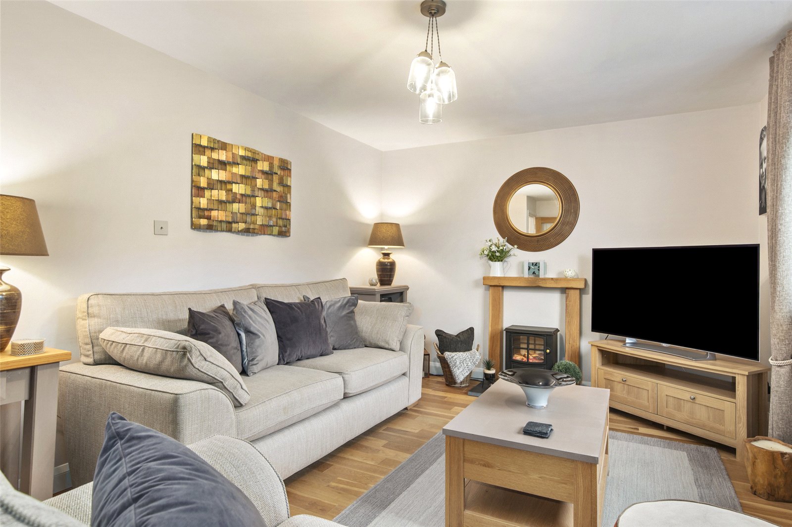 Also on the ground floor is a lovely, cosy lounge, a generous double bedroom, and a modern shower room.