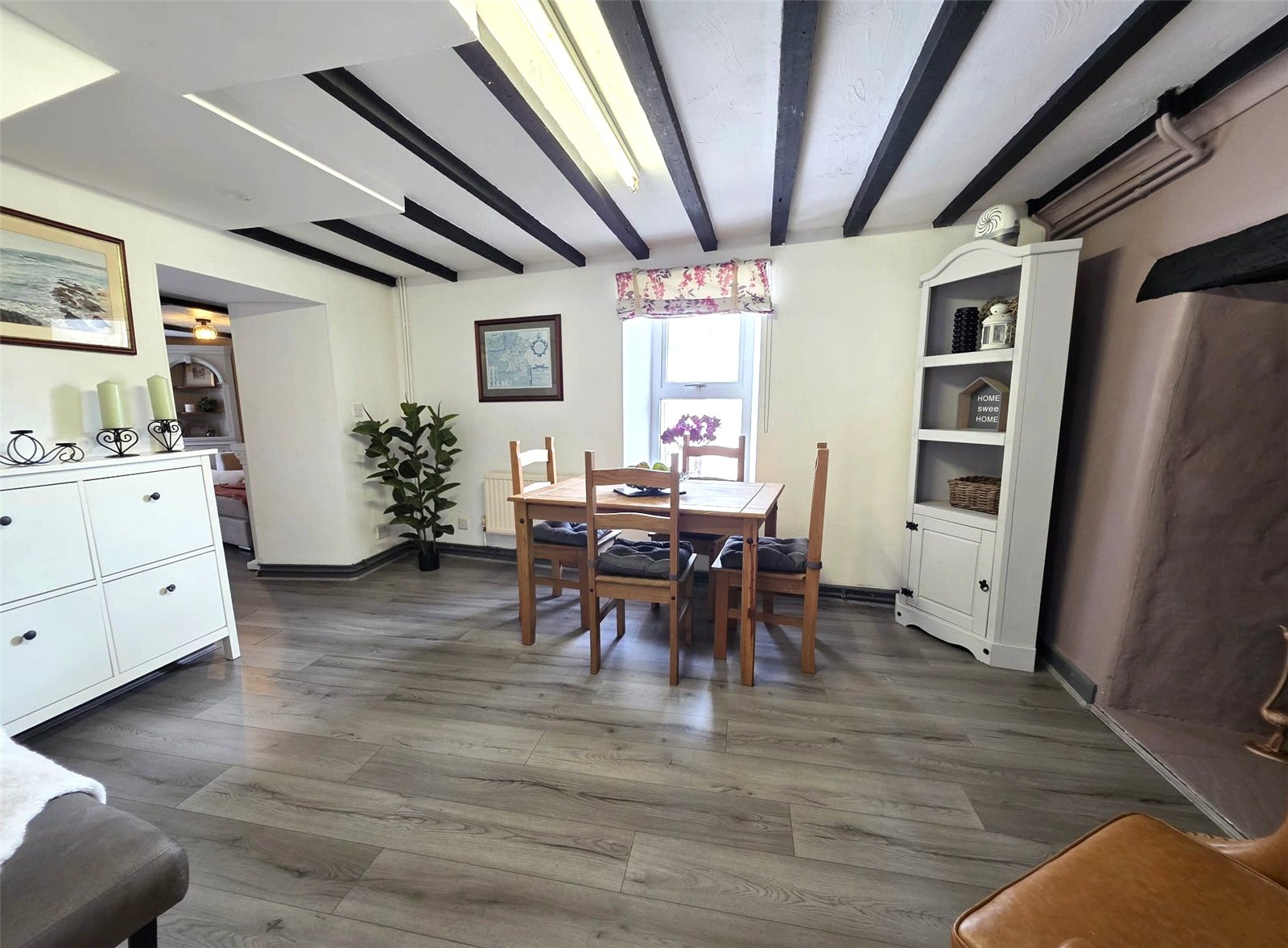 Part glazed entrance door, two windows to front aspect, two radiators. Feature fire place with electric fire, original ceiling beams.