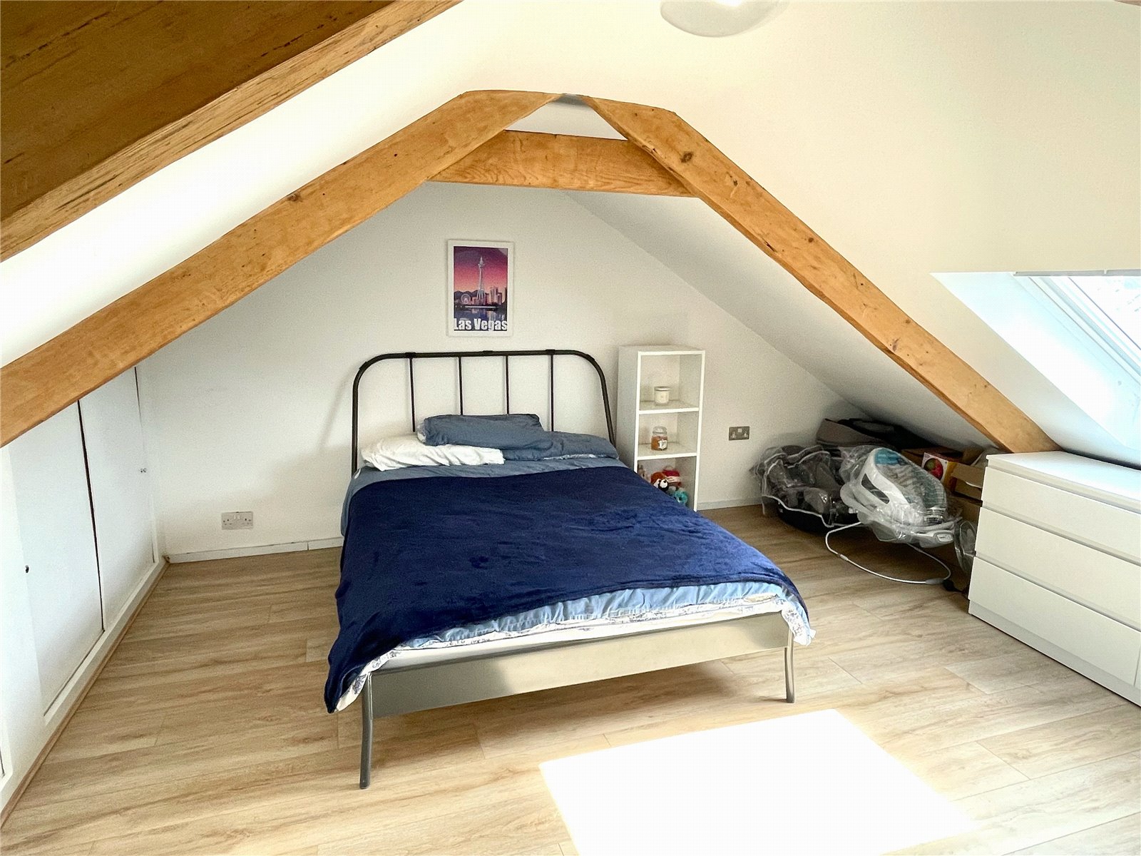 Used as a bedroom, there is new laminate flooring, new Velux window to front and rear, exposed ceiling beams, eaves storage.