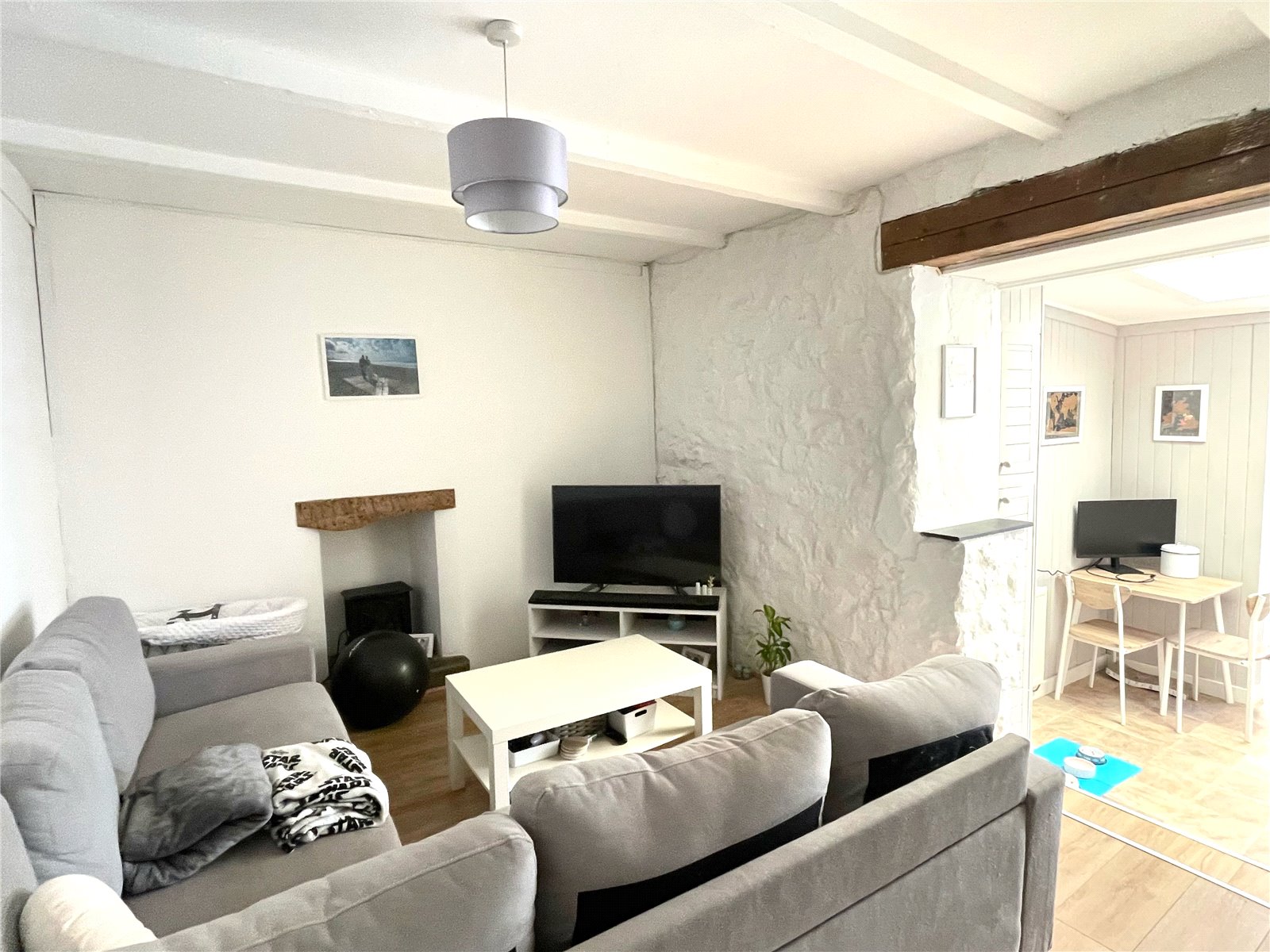 New uPVC front door, new laminate flooring, exposed painted stone walls.