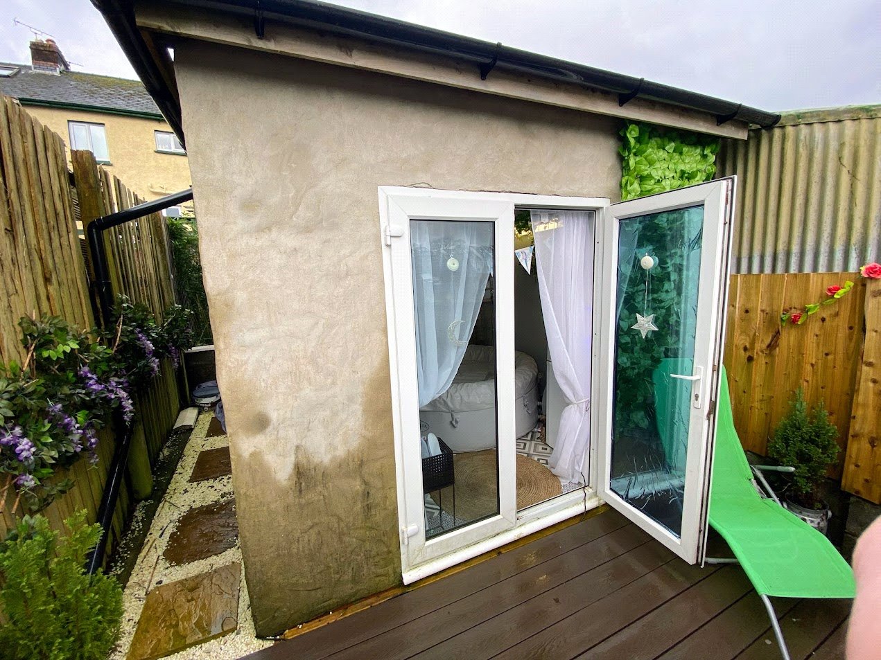 uPVC double glazed french doors, hot tub, lighting and electric.