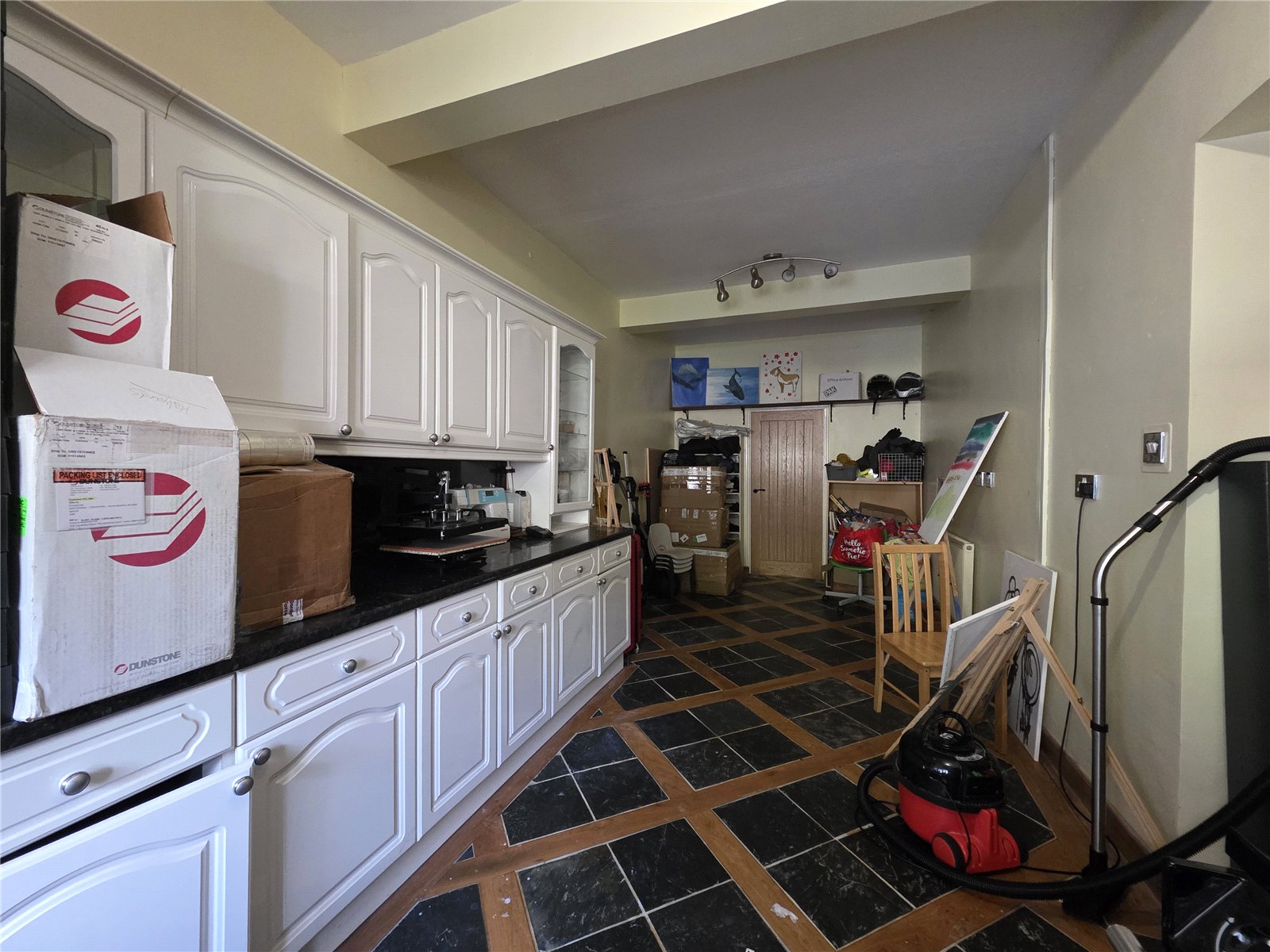 Approached via an impressive driveway, the property boasts spacious and versatile accommodation, including seven bedrooms, three reception rooms, two kitchens, and two bathrooms — ideal for multigenerational living or potential guest accommodation.
