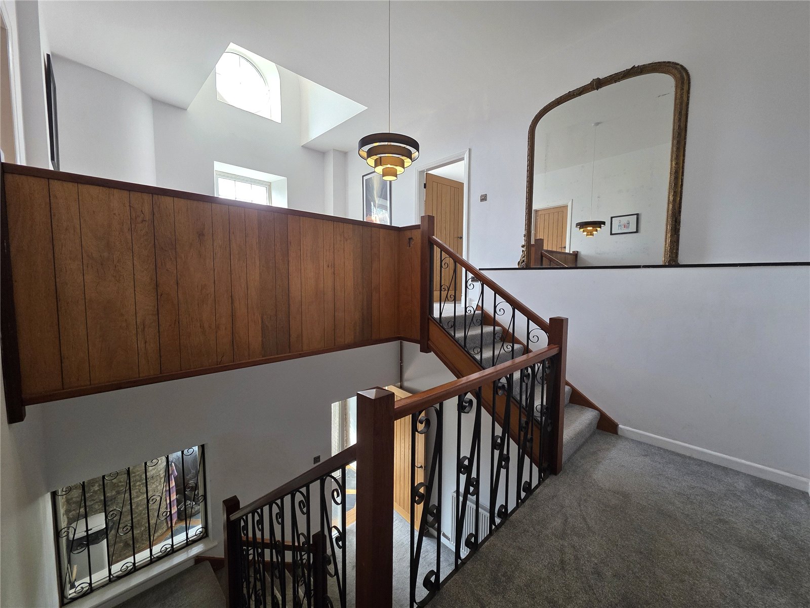 Full of character and charm, the home opens into a striking entrance hall and is surrounded by a mix of formal gardens and natural beauty. The elevated rear garden offers sweeping views over the countryside, while a private woodland walk within the grounds provides a peaceful retreat right at your doorstep.