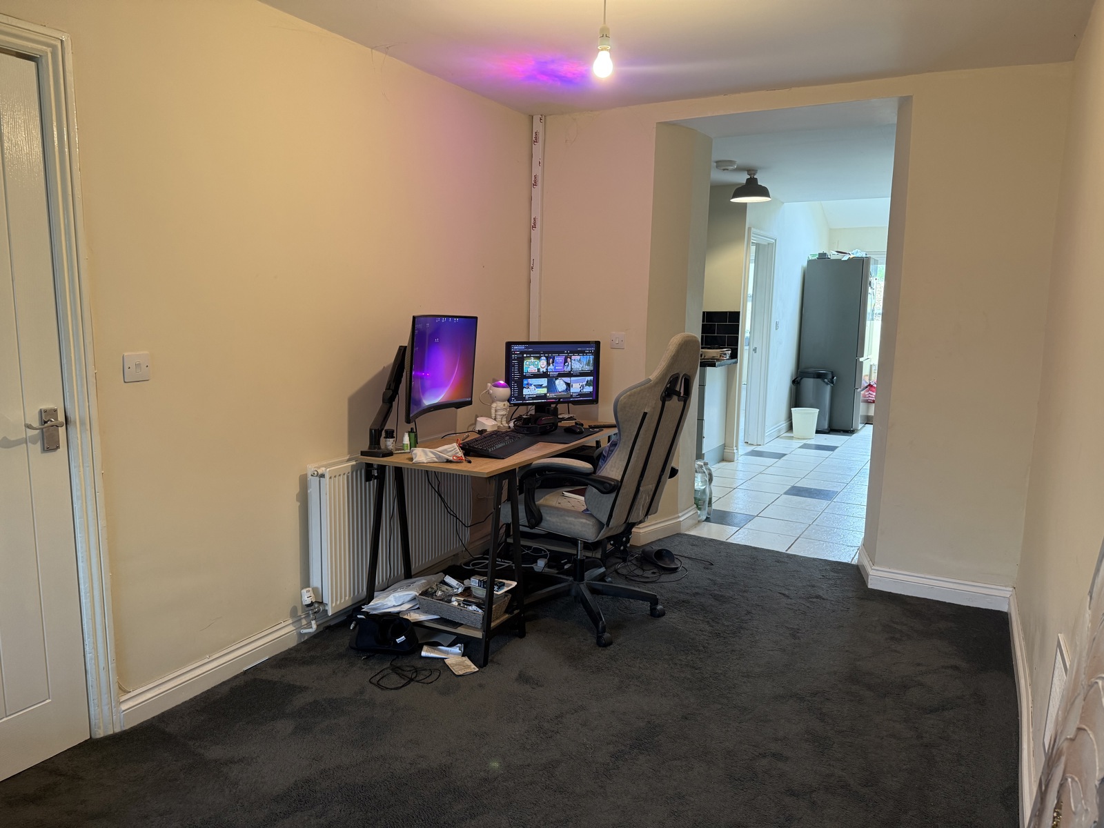 This generously proportioned room offers superb flexibility, making it ideal as an extended lounge, gaming or hobby space, or a comfortable dining area. The neutral décor and dark carpeting create a warm, modern backdrop, while the long, open layout allows for easy zoning to suit a variety of lifestyles. A natural flow leads through to the adjoining kitchen area, enhancing the sense of space and practicality. With its adaptable footprint and clean, contemporary finish, this is a highly versatile room that can be tailored to meet a wide range of needs.