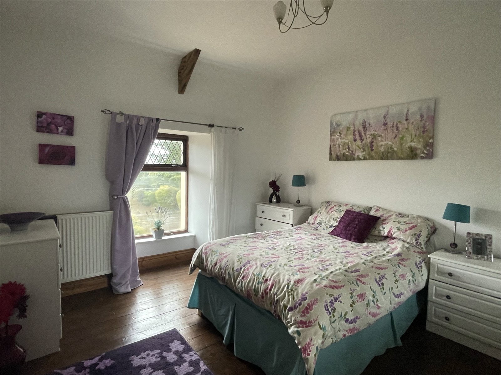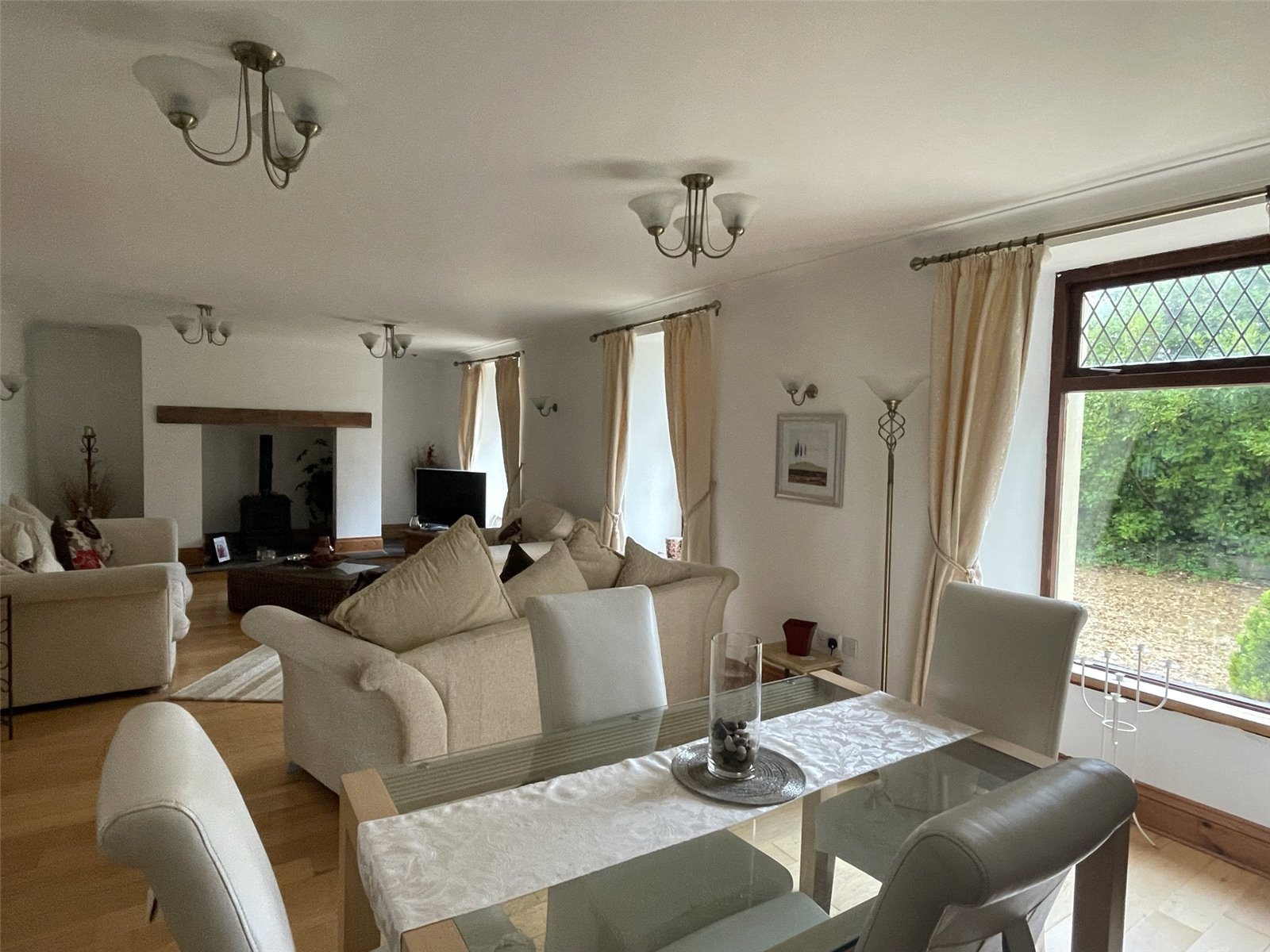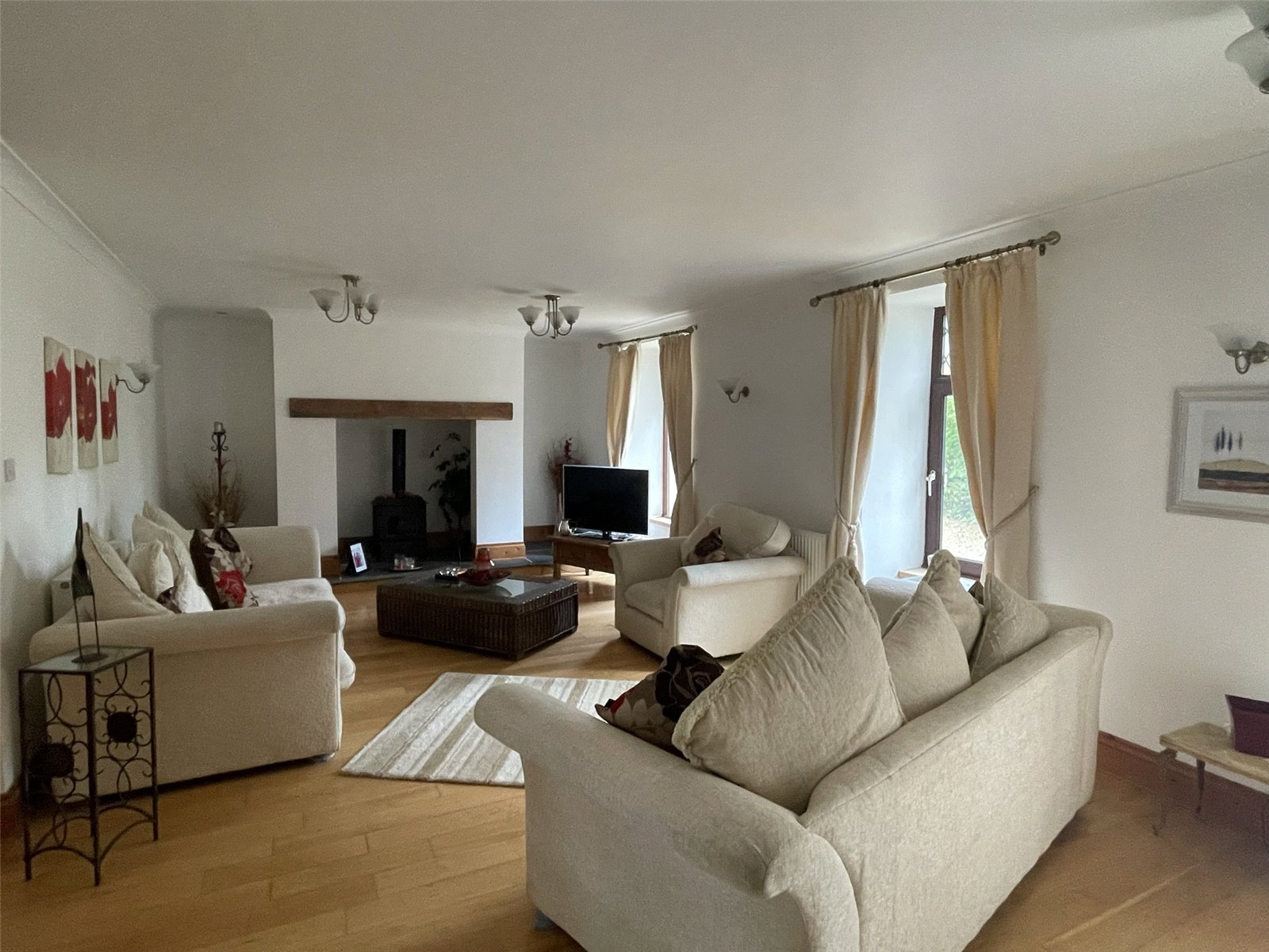 Solid wood flooring, 3 double glazed wooden windows, 3 radiators, ceiling lights and wall lights, feature inglenook fire place with slate hearth and exposed lintel.