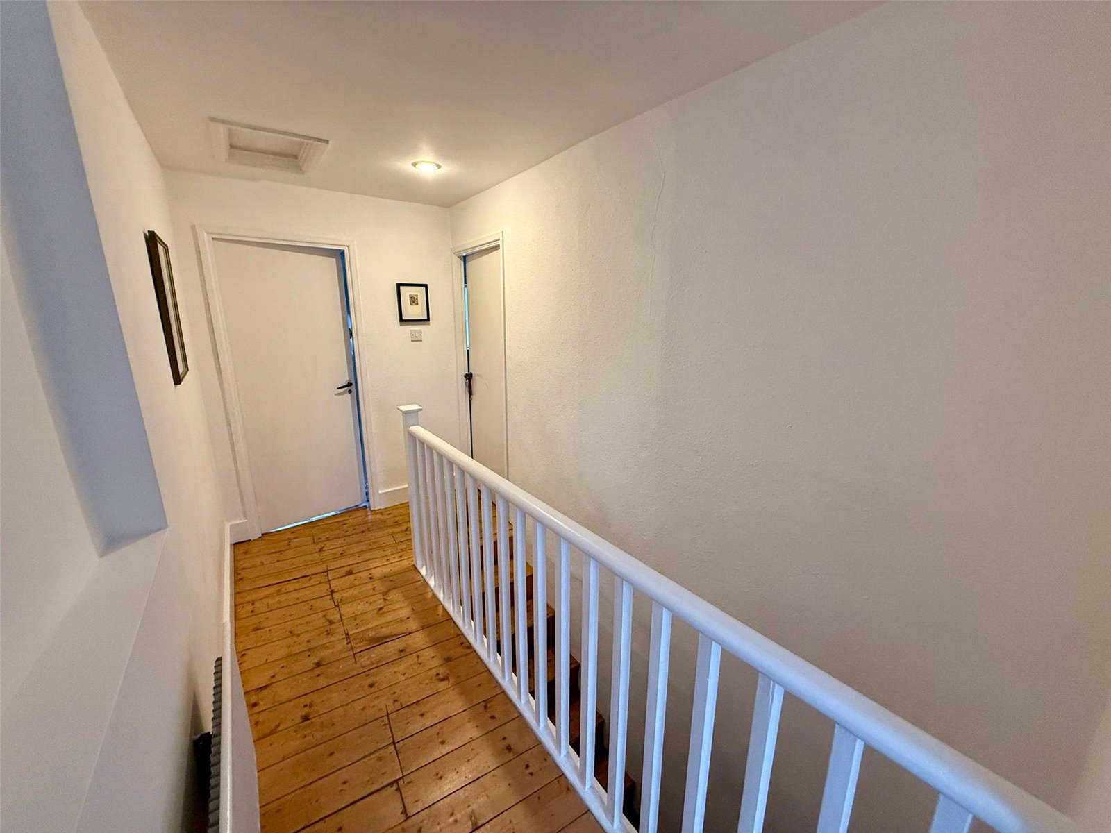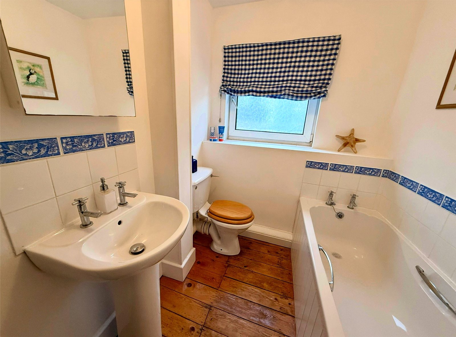 uPVC doubled glazed window, storage cupboard, fitted bath, toilet and wash hand basin. Wooden flooring.