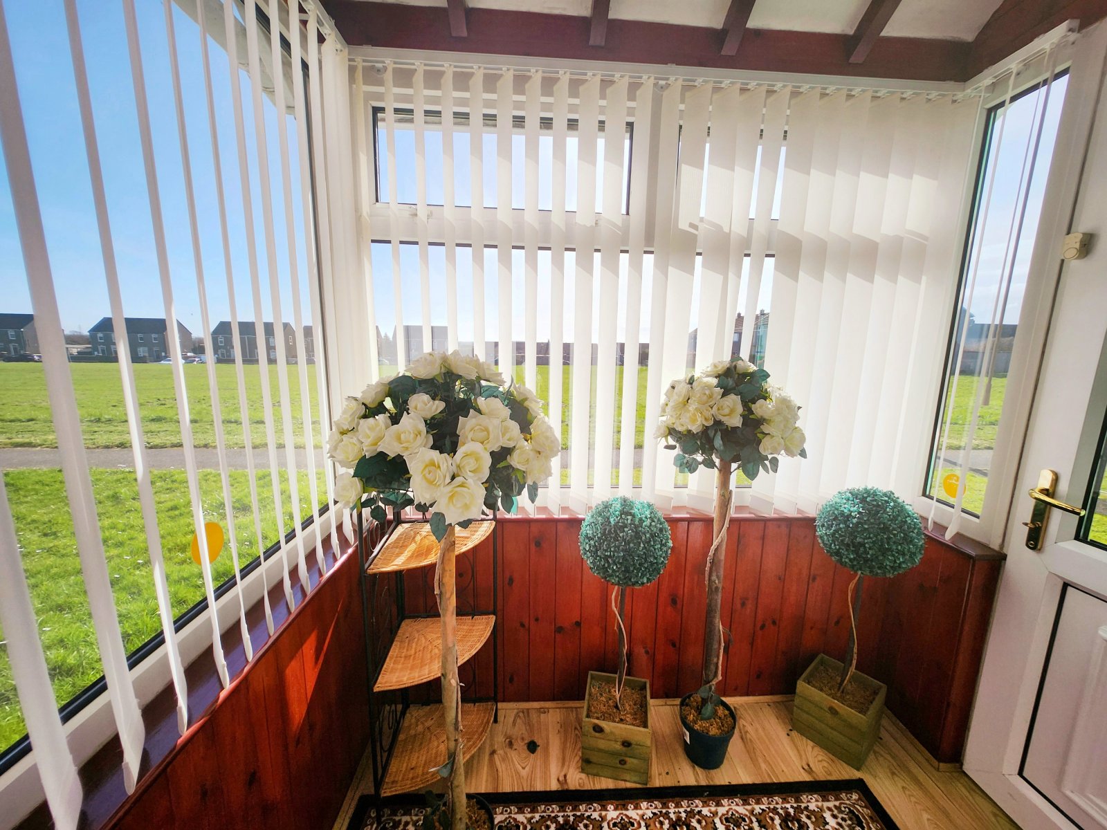 Externally, the property offers front and rear access with courtyard either side with a storage shed in the rear court yard, to the fore is a large playing field and parking is available to the rear.