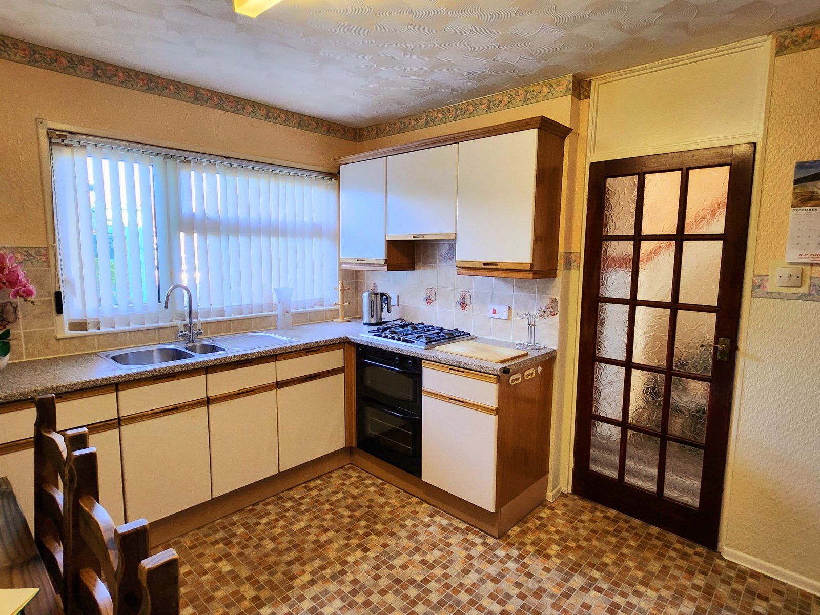 Vynil floor, radiator, u PVC window to rear, selection of wall and base units, built in storage, built in oven and hob, stainless steel sink with mixer tap, celing light.