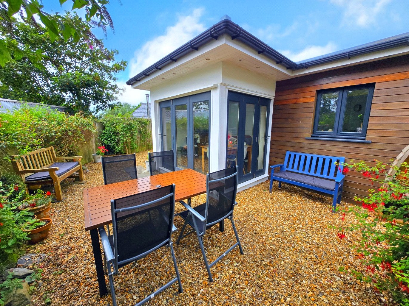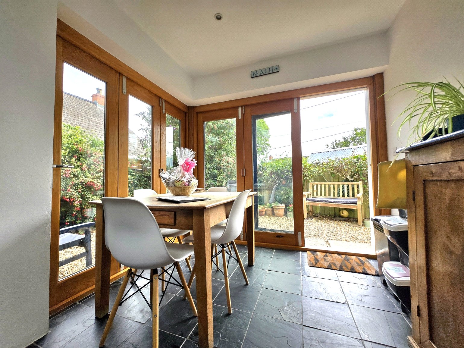 Diner area comprises a sizeable dining area, with two bi-folding double-glazed wood finish doors, giving the room a bright and airey atmosphere and access to the garden. Perfect for entertaining and allowing a sea-breeze through the house.