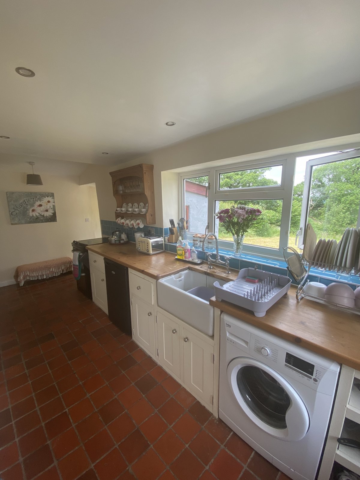 Tiled floor through out, fitted base units 2 windows, ceiling down lighters.