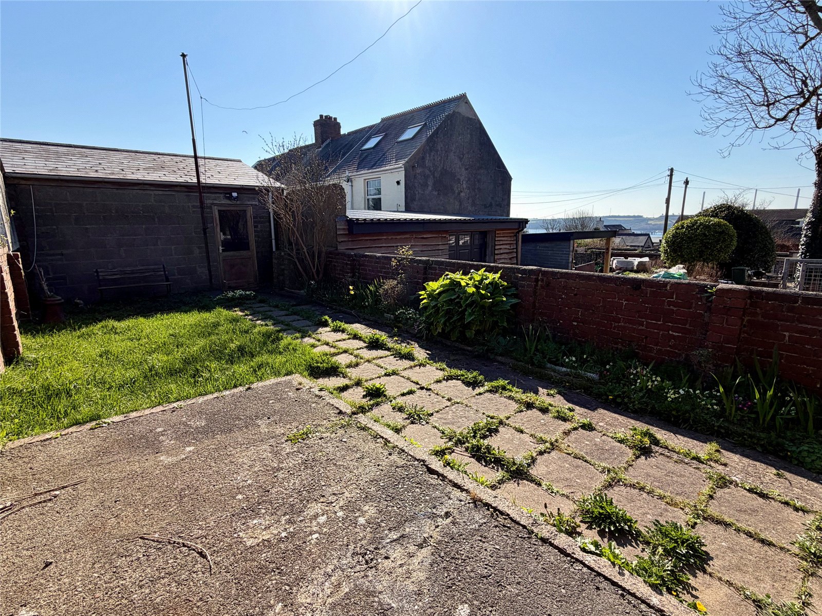 Externally, the property is set back from the road behind a welcoming front garden which provides an ideal spot to sit and enjoy the surrounding views, which extend as far as the water across Milford Haven Marina. Side access leads through to the rear garden, which is mainly laid to lawn and also provides access to the detached garage. The garage currently includes a service pit and offers further potential, although it does require some work and the installation of a garage door.