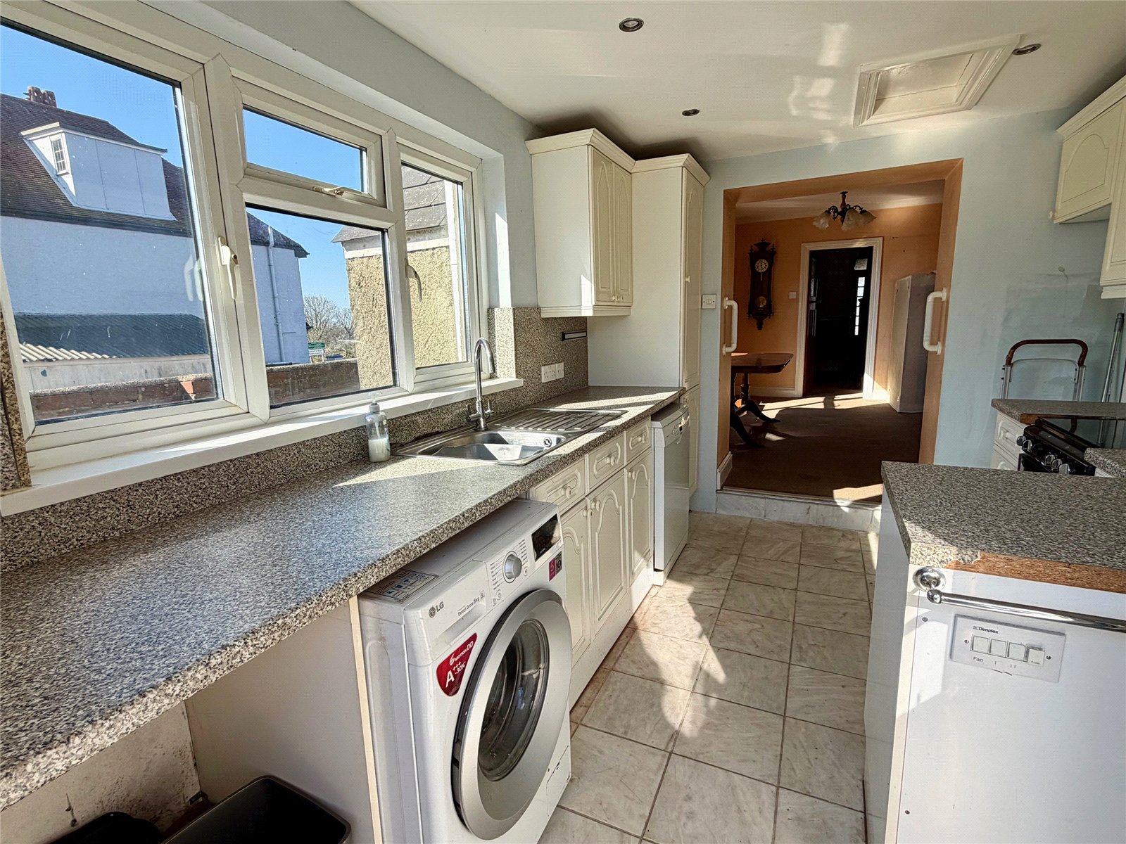 The kitchen leads through to a separate dining room which enjoys views of, and direct access to, the rear garden, creating a pleasant space for family meals or entertaining. Upstairs, the property offers three well-proportioned bedrooms along with an adapted shower room. The loft space is notably spacious and, subject to the necessary planning permissions, could potentially be converted to create a fourth bedroom or additional living space.