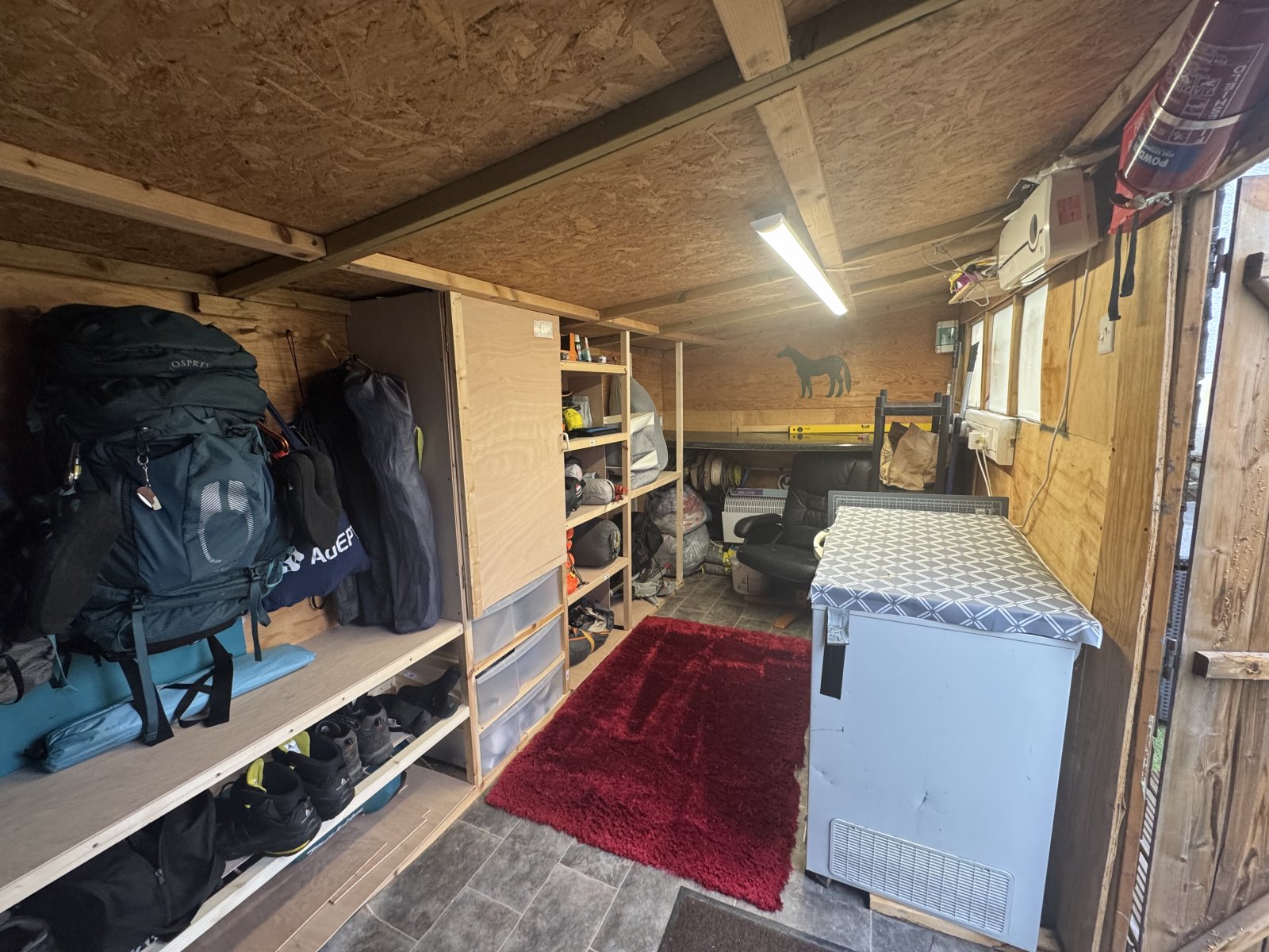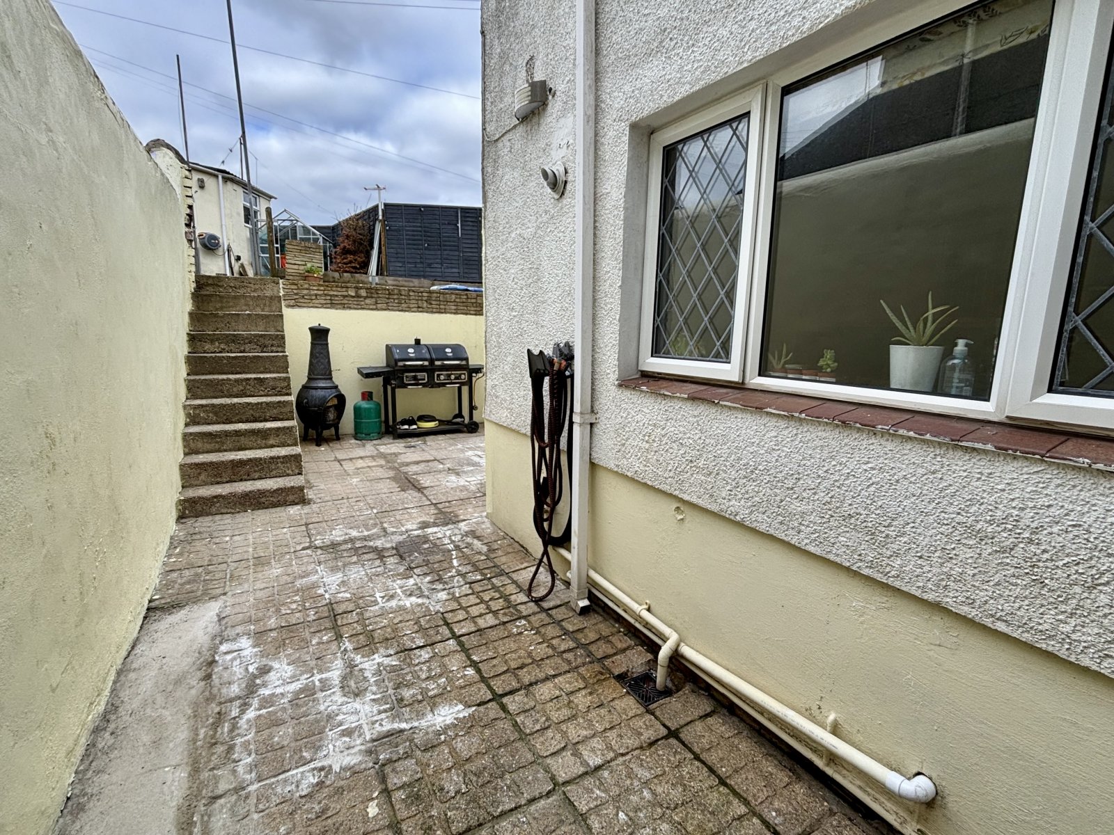 Externally, the enclosed rear garden is a real highlight. The bottom of the garden offers ample patio space, perfect for setting up outdoor furniture and enjoying sunny days. Steps lead up to a lush, grassy area, while the raised section of the garden features a brick-built garage equipped with electricity and water. To the side, a decked area with a long shed offers additional storage space and includes electricity for added convenience. The decked area also has a small patch of astroturf, providing an ideal spot for a table or additional seating. In addition, the property benefits from solar PV panels (4k) with immersion control, helping to improve energy efficiency. Two loft spaces provide plenty of room for storage, with the loft having been fully insulated by British Gas in recent years.