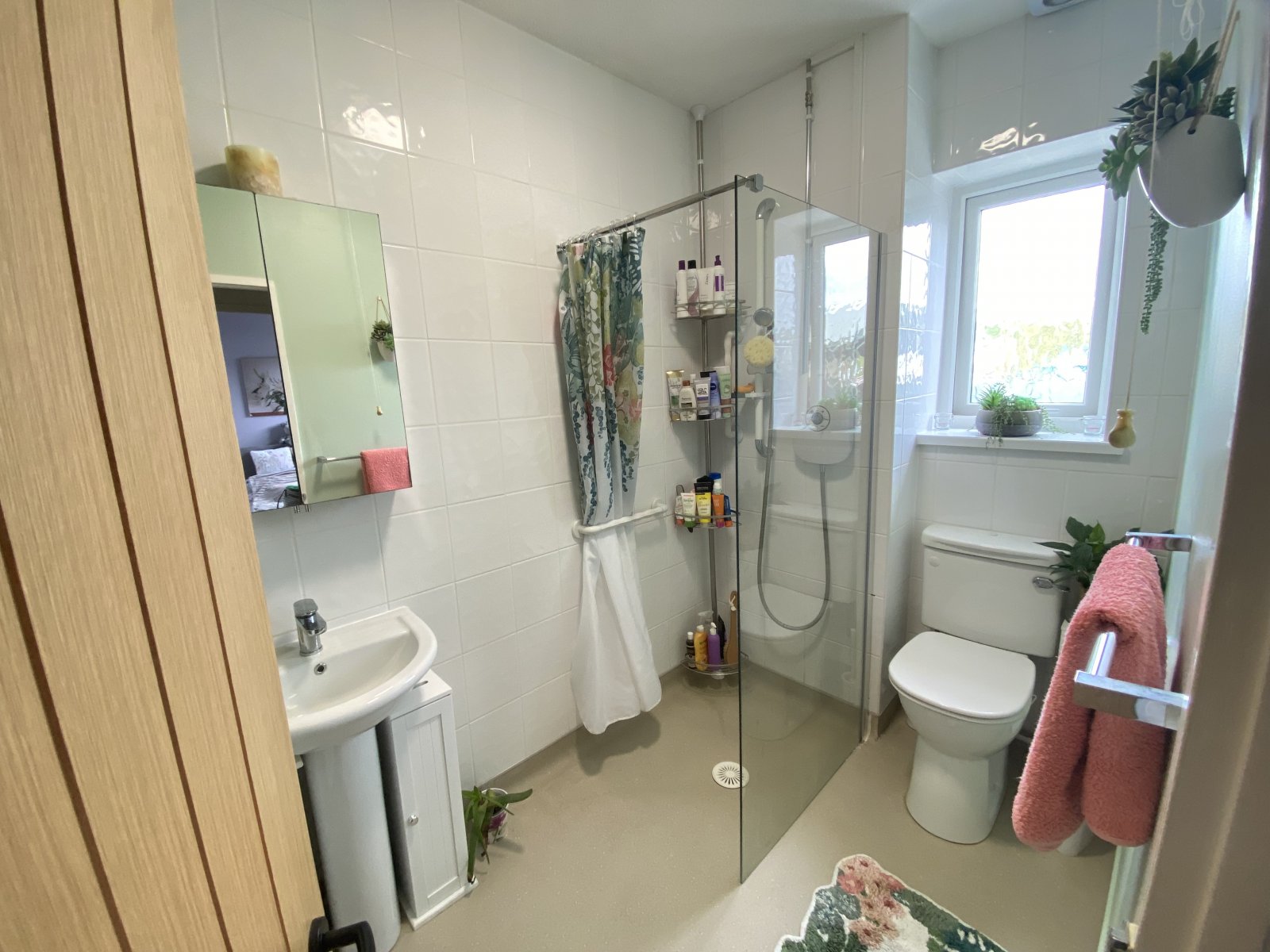 WC, Wash hand basin, walk in shower unit.
