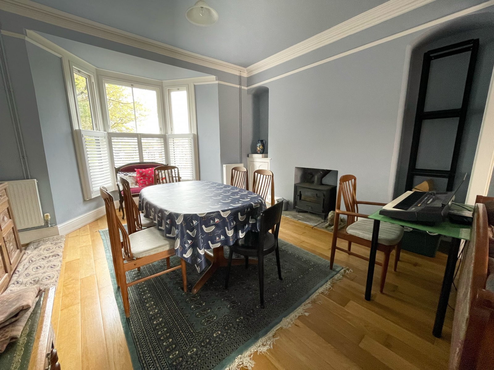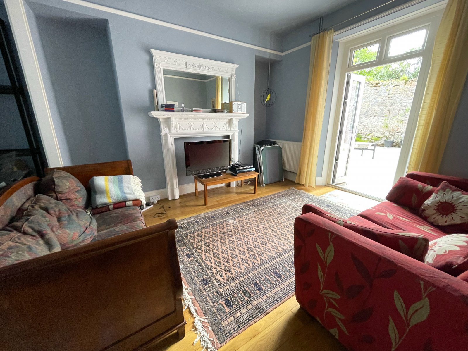 Wooden flooring, wood burning stove, double glazed uPVC window to for and patio doors to rear, radiator x3.