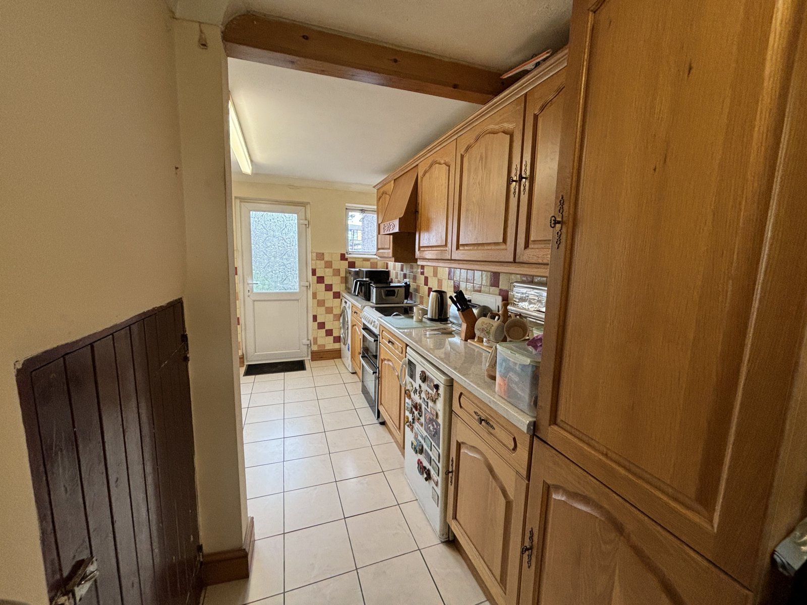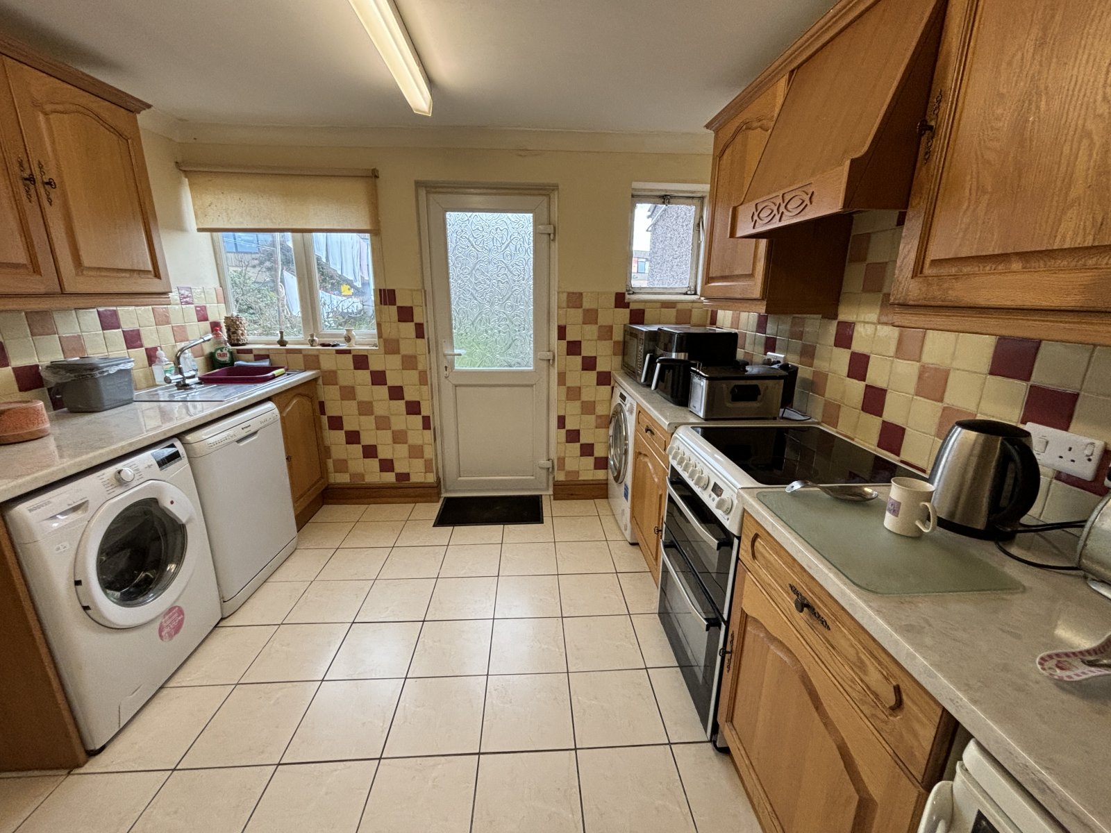 This property is an end of terraced 3 Bedroom family home. It boasts double glazed windows and doors and gas central heating. The Entrance Hallway leads into the large Lounge / Dining Room. There is a gas fire place as the focal point of the room and there are double glazed windows overlooking the front and the rear Gardens. There is a door leading into the Kitchen / Utility area which has a good range of wall and base units with space and plumbing for free standing appliances. There is a double glazed door leading onto the rear Garden. The first floor landing leads to three Bedrooms and there is a possibility of converting the attic into a further room as neighbouring properties have done.