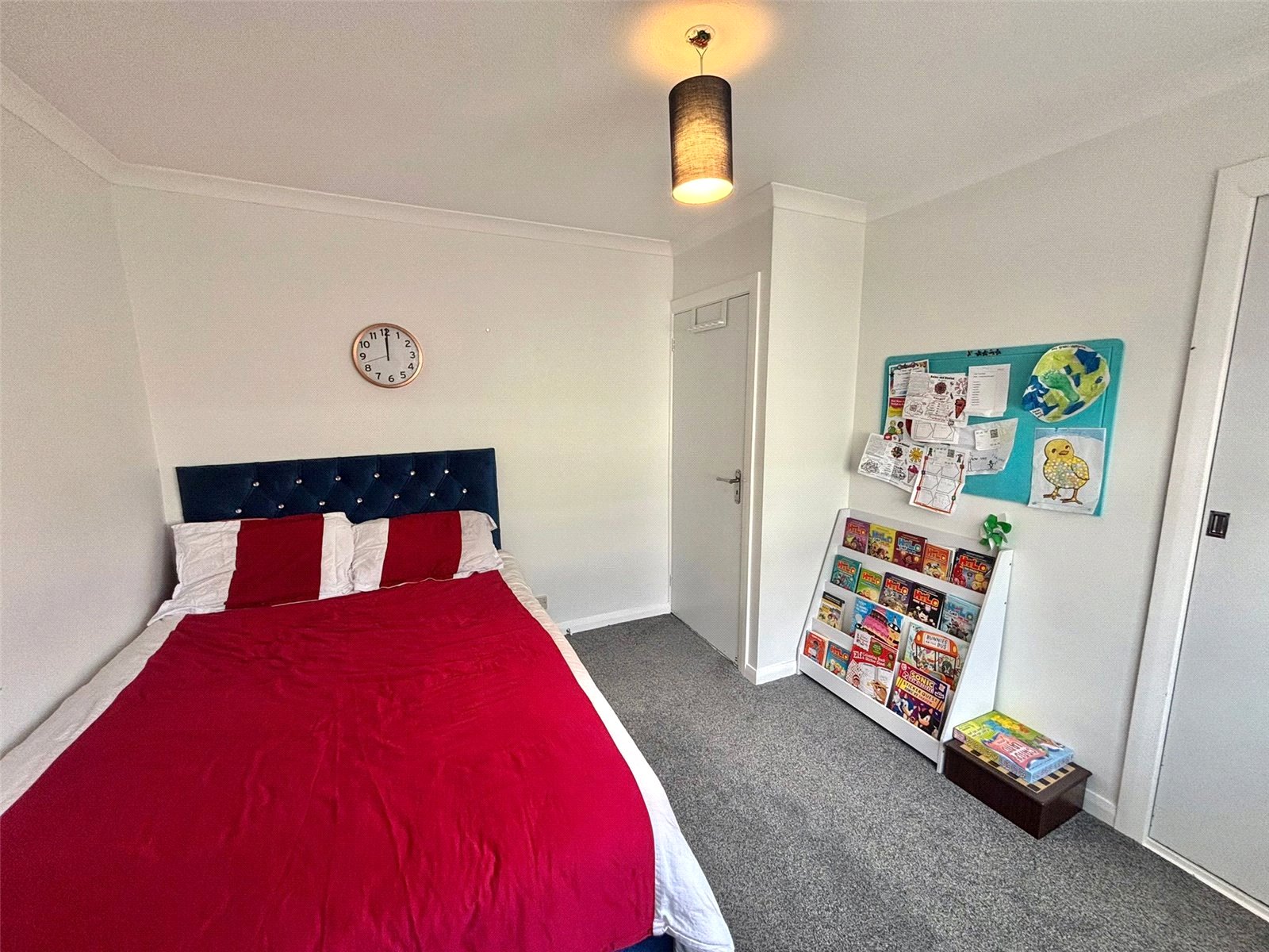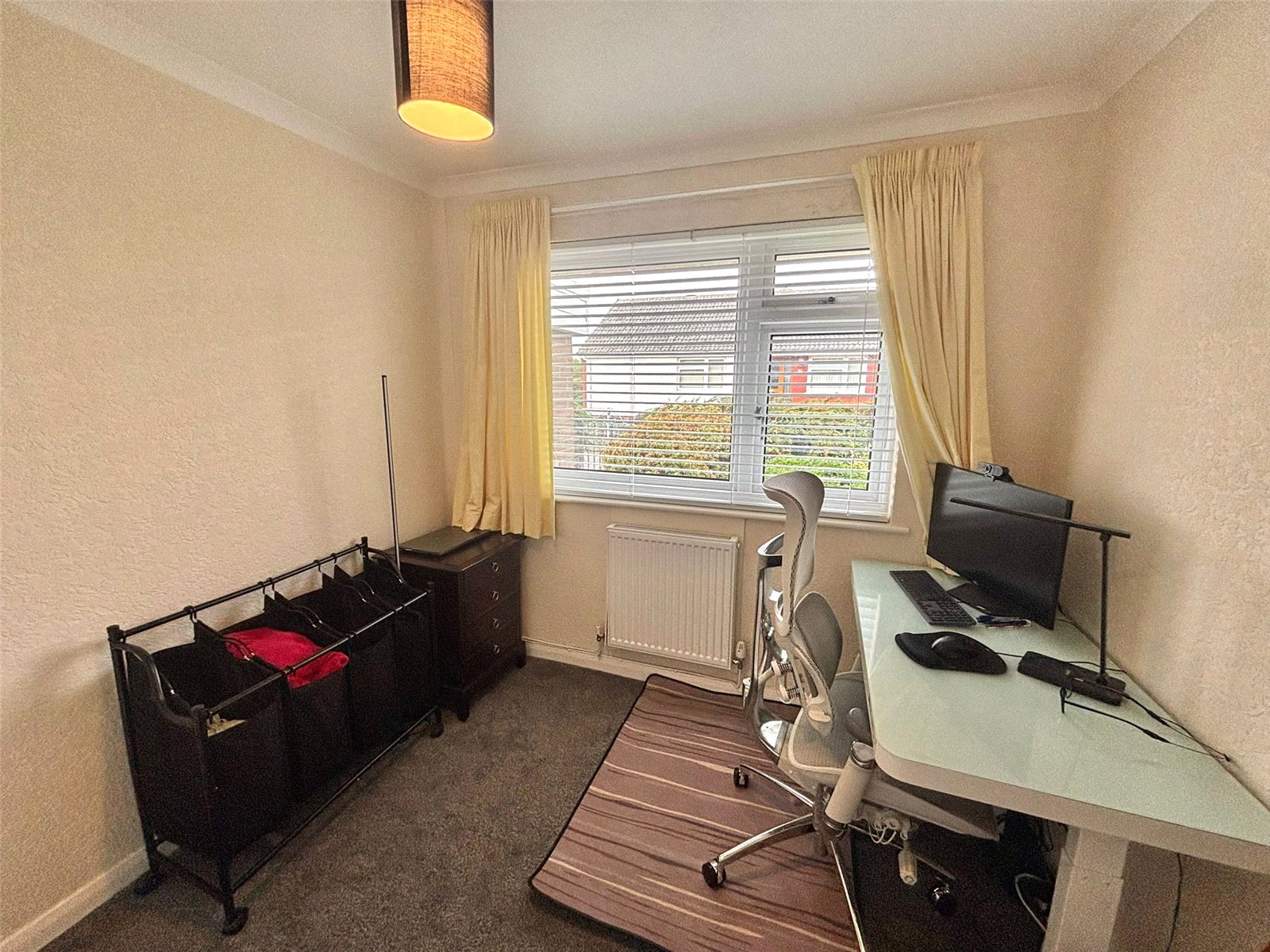 Flexible third bedroom currently serving as an ideal home office space. This single room benefits from neutral decor, a good window aspect, and useful fitted wardrobe storage.