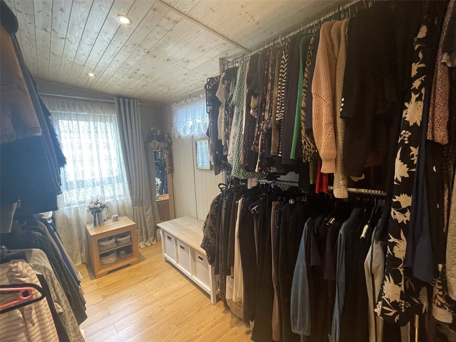 Laminate floor, ceiling lights, uPVC double glazed windows, fitted hanging rails, electric radiator.