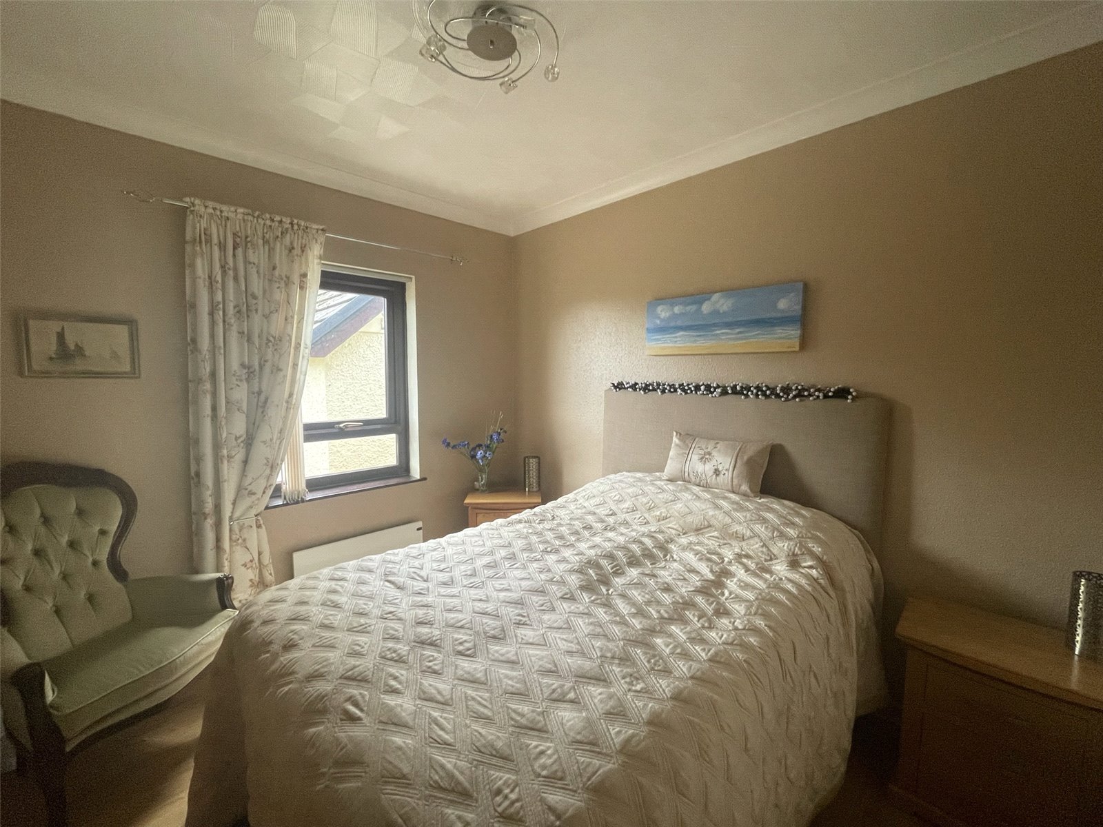 Laminate floor, ceiling light, electric radiator, uPVC double glazed window, access to ensuite and: