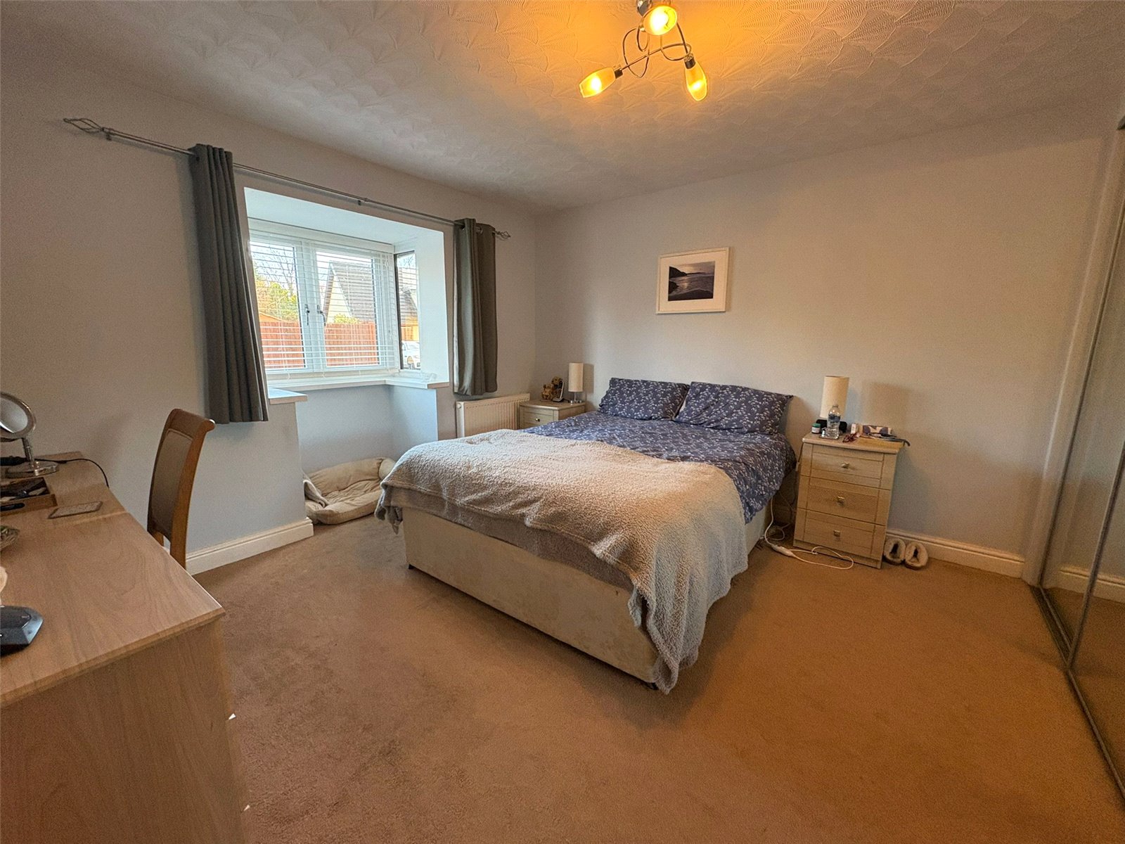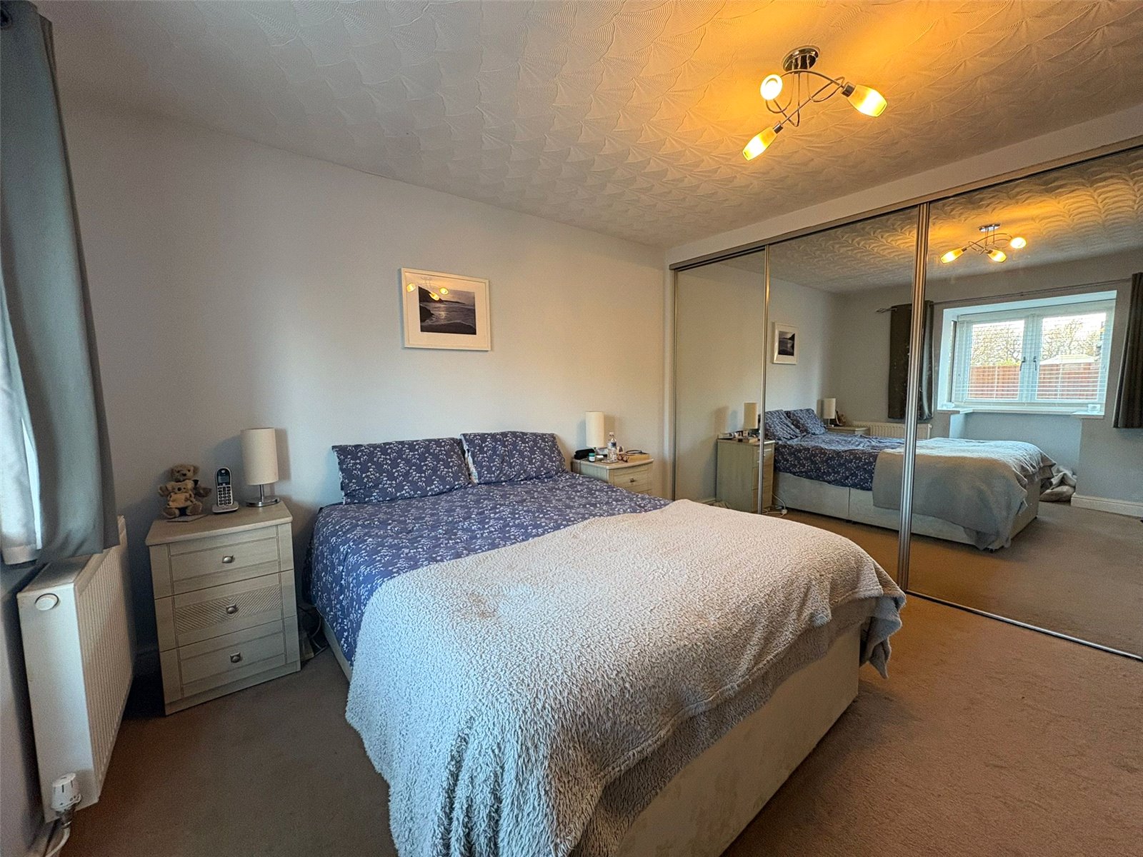 The property features three generous double bedrooms, including a principal bedroom with a private ensuite, and an additional bedroom enhanced with fitted wardrobes for excellent storage. A well-appointed family bathroom serves the rest of the home.