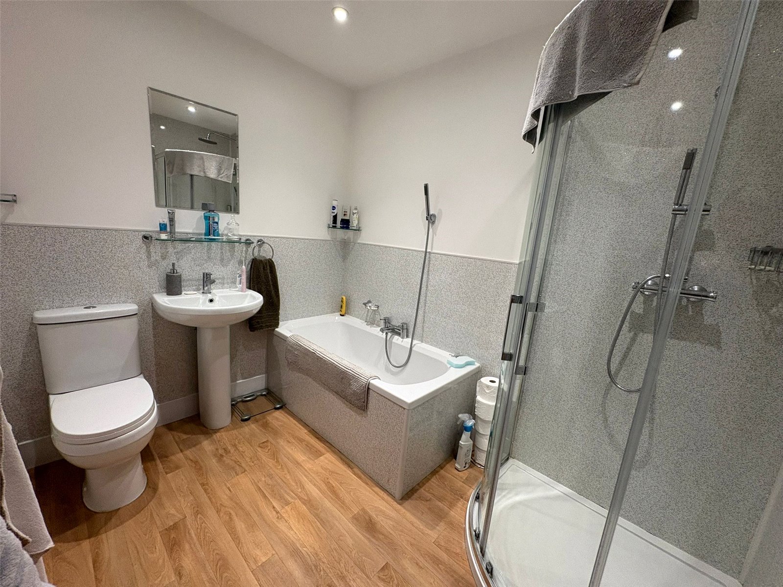 Bath with shower head attatchment, Separate shower, laminate flooring, gas central heating.