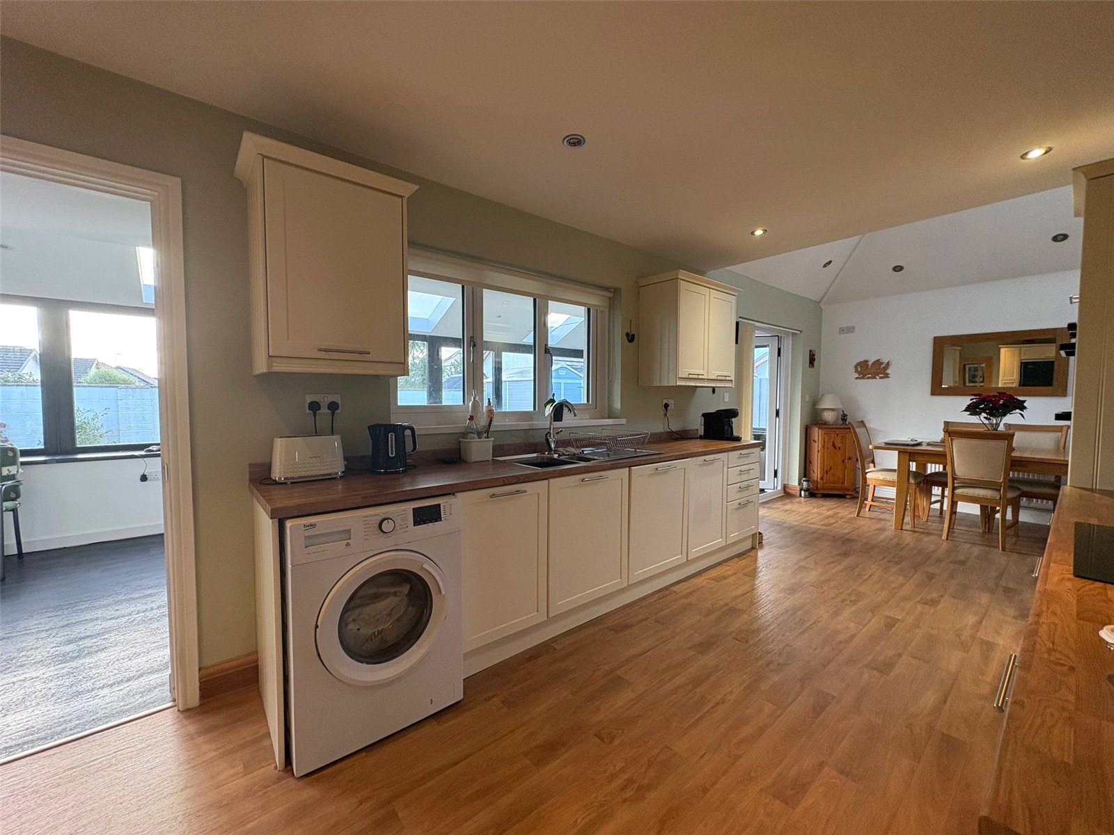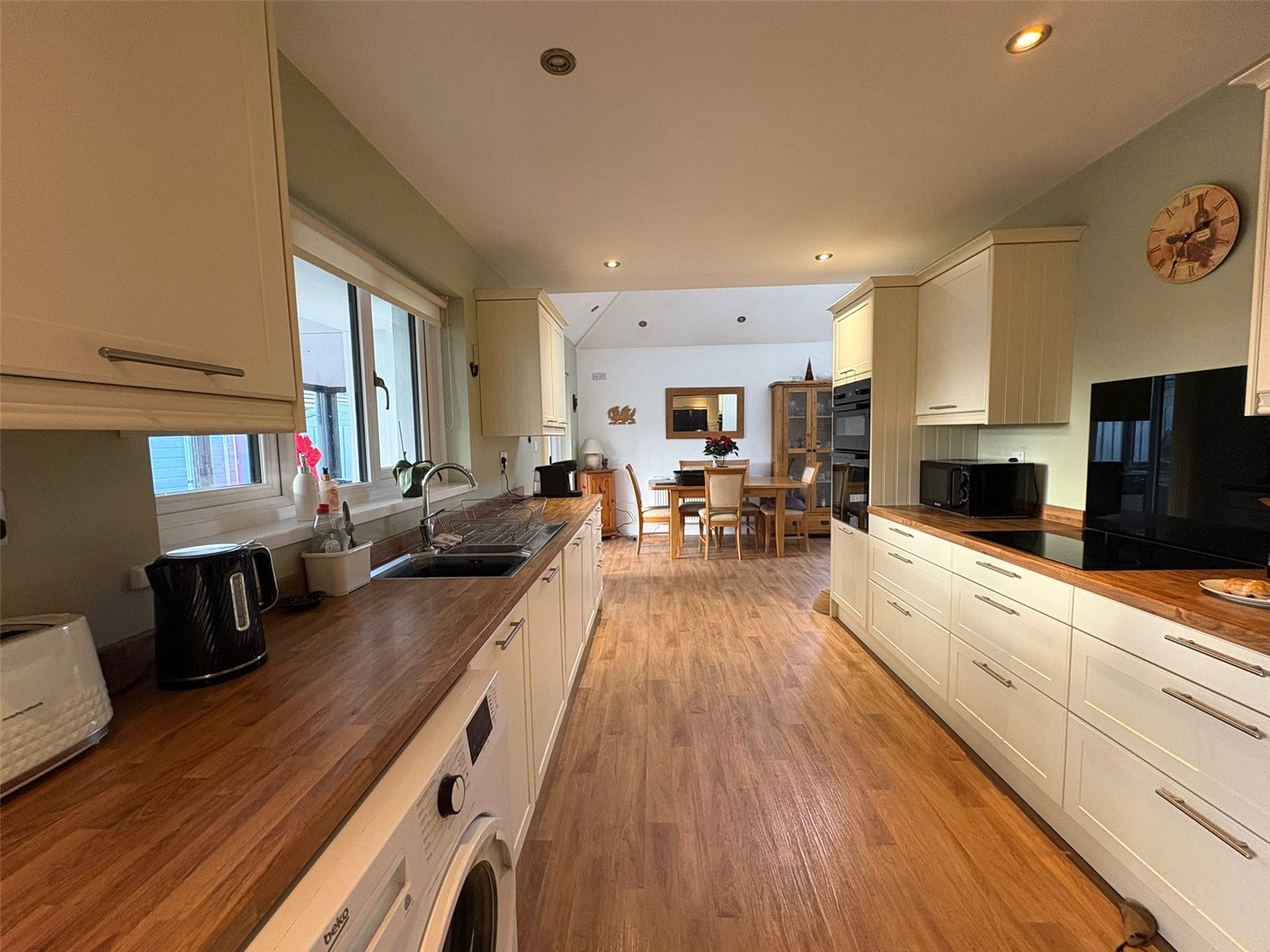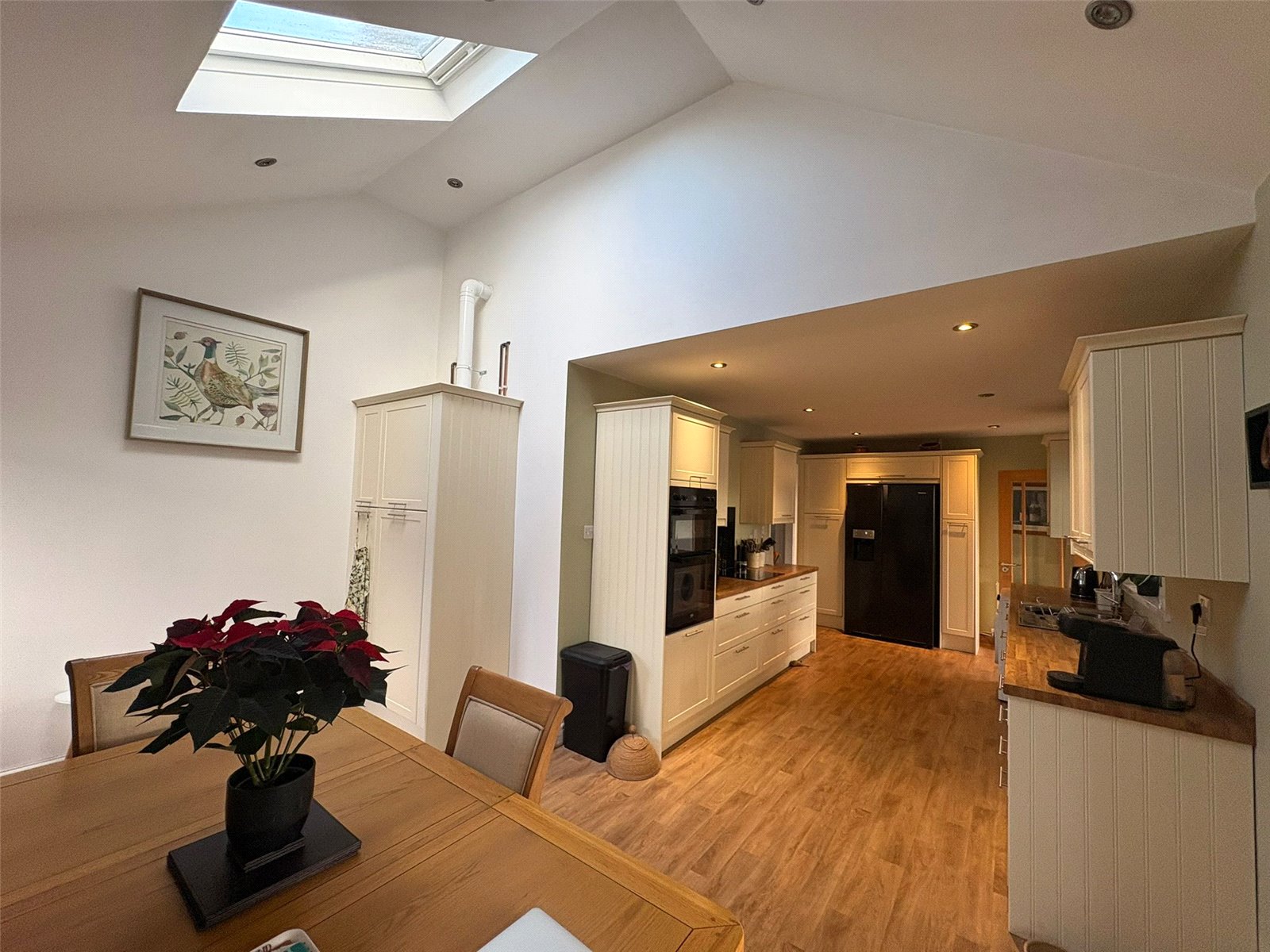 The heart of the home is the open-plan kitchen and dining room, offering a sociable layout ideal for family life. The modern kitchen is equipped with integrated appliances and ample workspace, flowing seamlessly into the dining area.