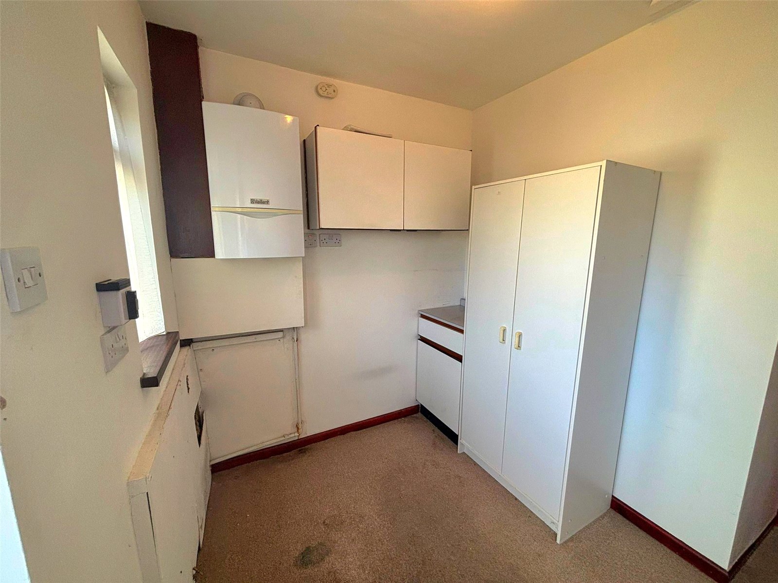 The room currently houses the modern wall-mounted gas boiler along along with useful overhead storage cabinets and space for appliances. This area is ready to be fully fitted to the new owner's specification, allowing for the installation of a washing machine, dryer, and further integrated storage solutions.