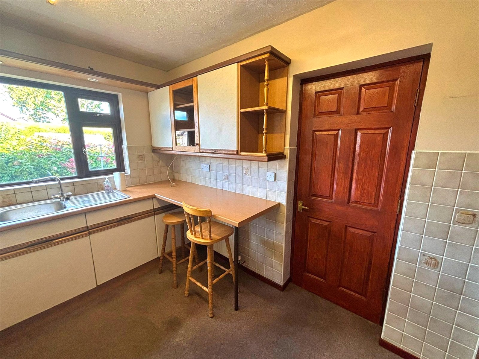 A standout feature is the breakfast bar area providing a casual spot for quick meals or morning coffee. The walls are tiled to splashback areas, and two panelled internal doors lead to the utility room and dining room, offering good flow to the ground floor.