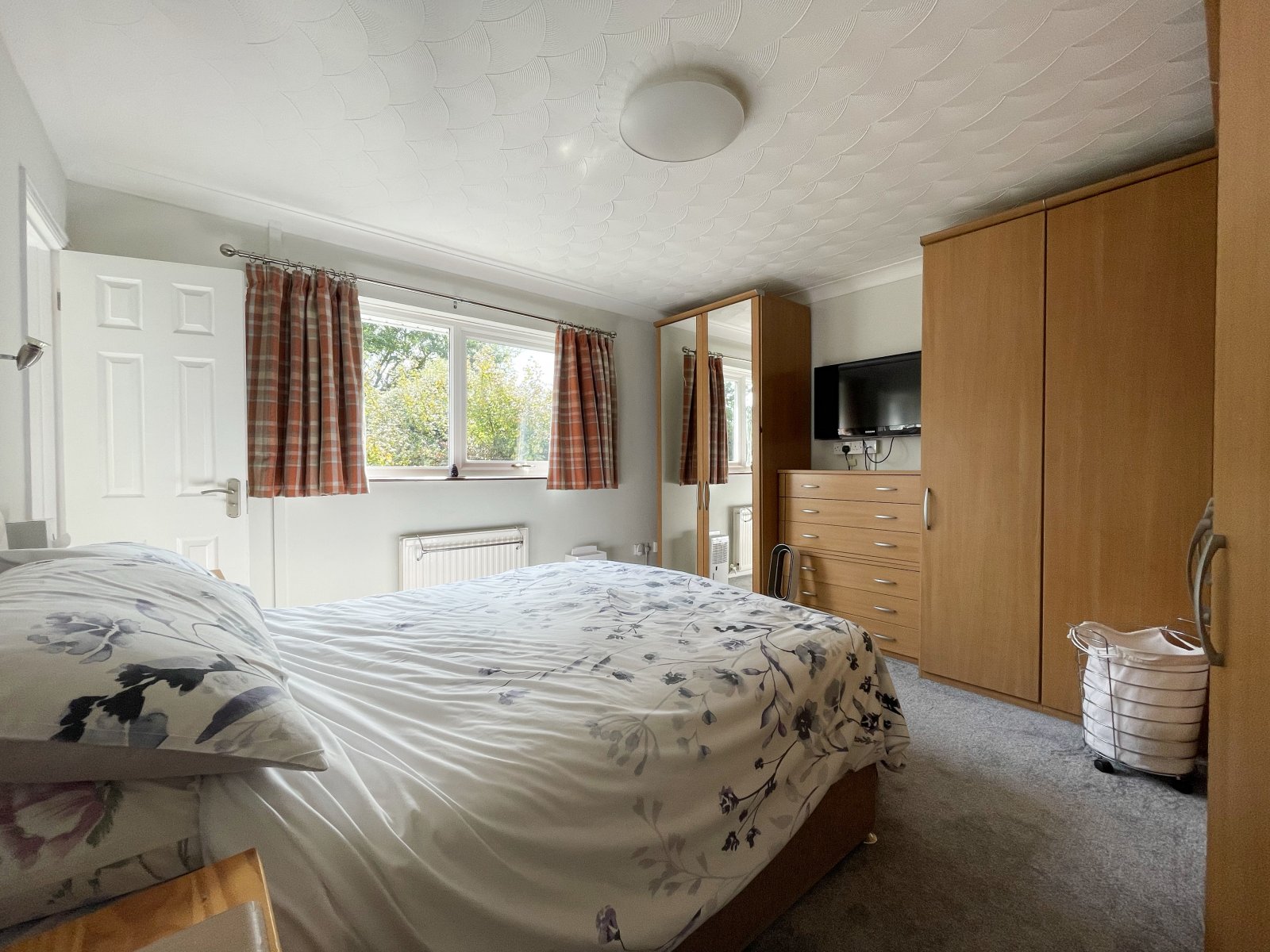 Carpet flooring, fitted wardrobe units, radiator, double glazed uPVC window to rear.
