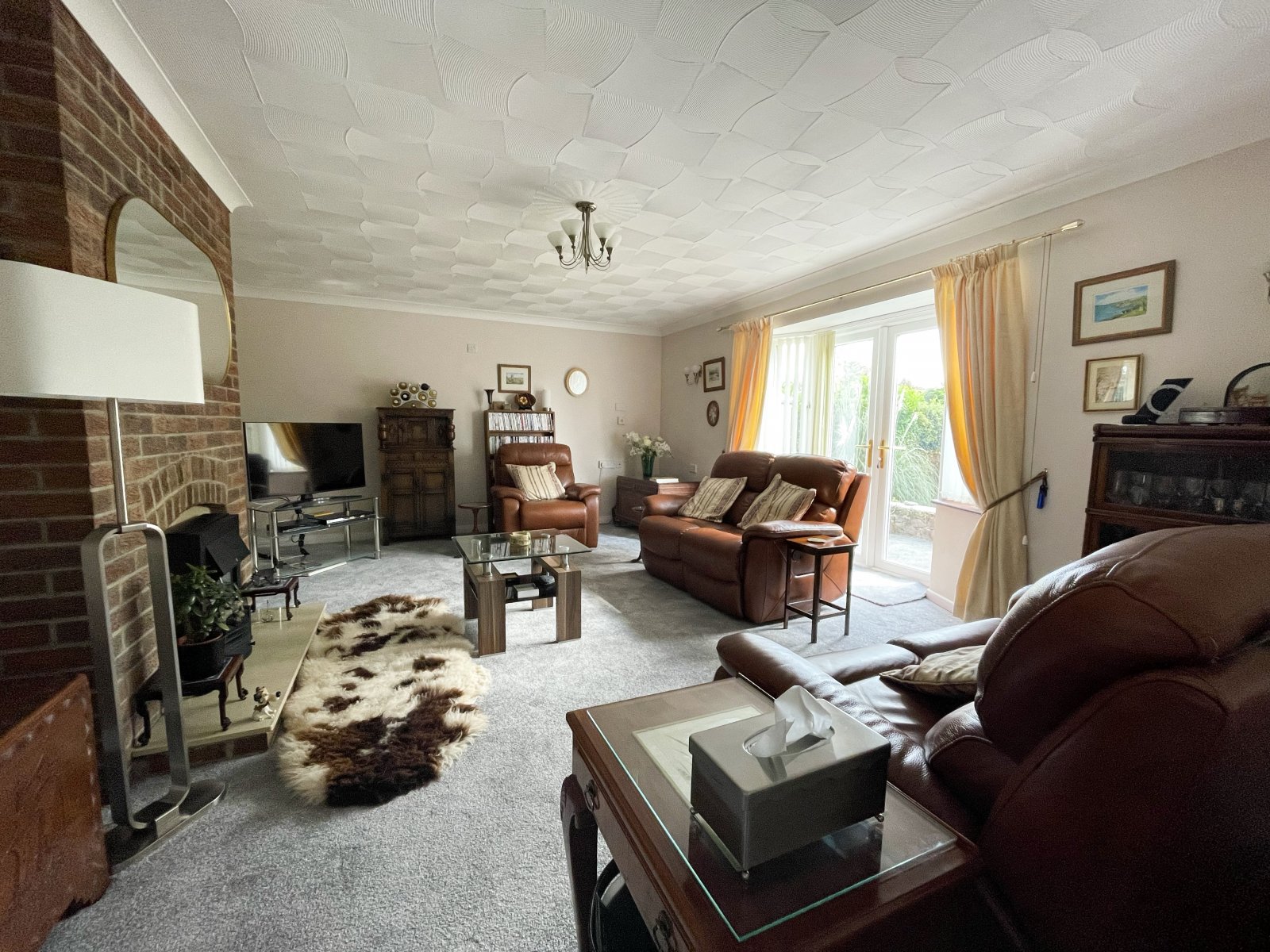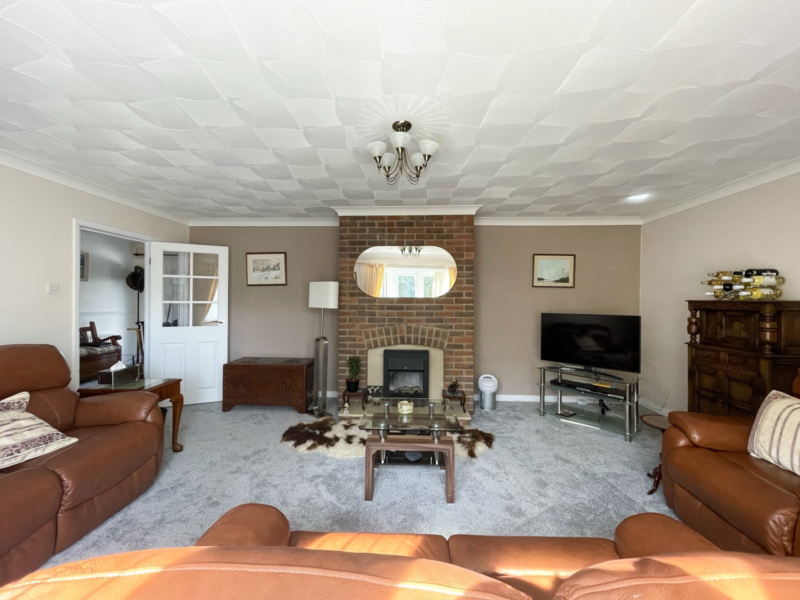 Carpet flooring, electric fire with brick surround, radiator, double glazed uPVC patio door to rear.