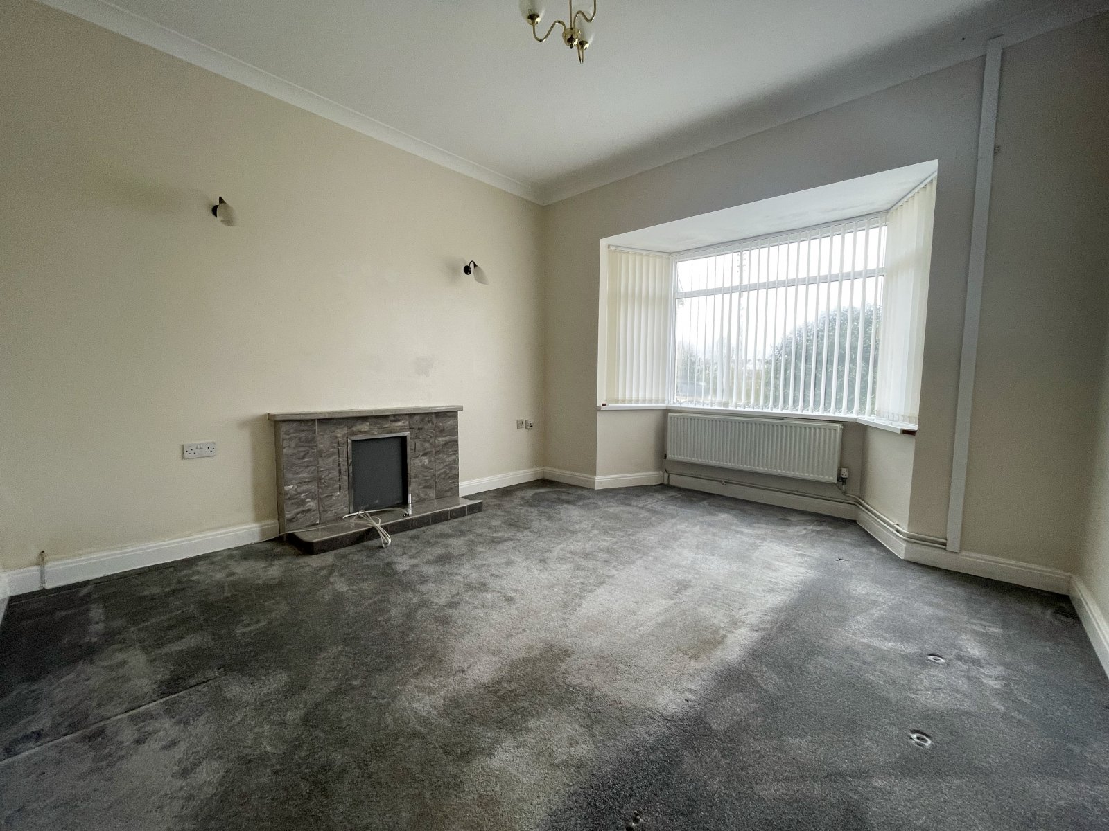Carpet flooring, electric fire, double glazed uPVC bay window to fore, radiator.