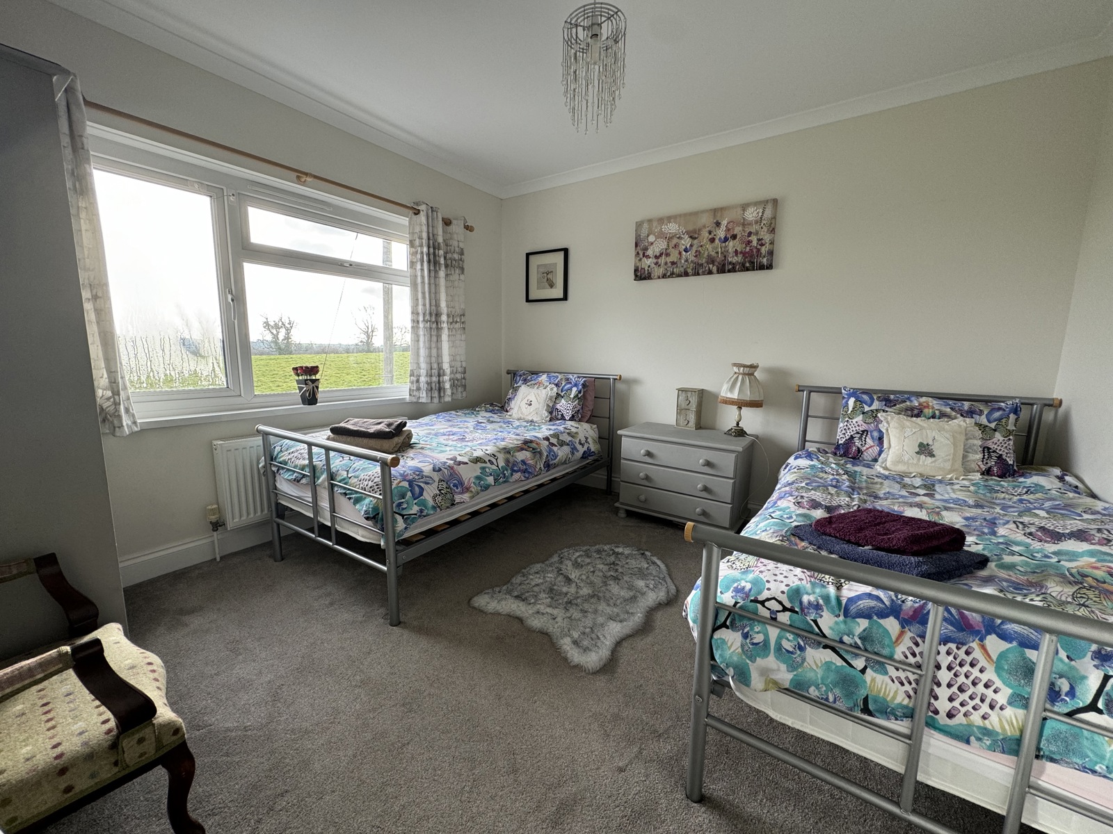 Carpet flooring, radiator, double glazed uPVC bay window.