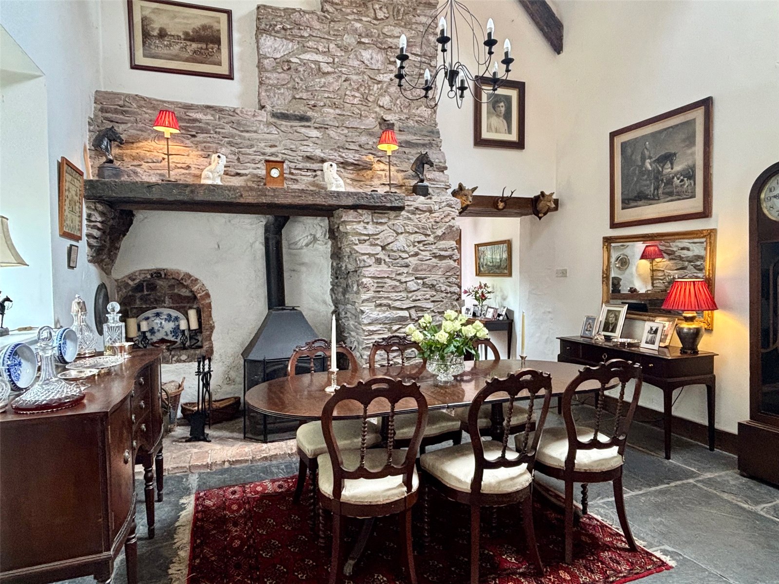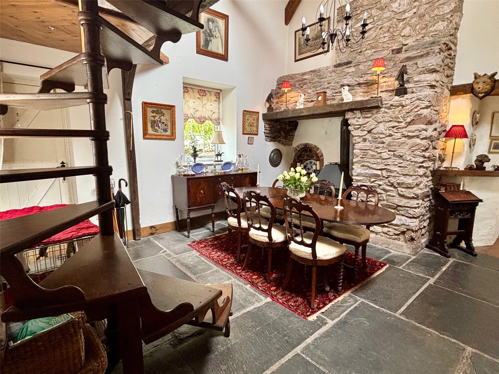 Featured on Escape to the Country, this truly unique and characterful three-bedroom cottage offers a rare opportunity to own a home bursting with rustic charm and individuality. Nestled in a peaceful rural setting, the property enjoys breathtaking countryside views to the rear and a picturesque village green to the front, creating an idyllic country lifestyle. A gated driveway provides off-road parking and leads to a beautifully maintained wrap-around garden, brimming with mature shrubs, fruit trees, and classic cottage garden plants. There is also further off roading for several vehicles at the front of the property. This generous outdoor space offers plenty of room to relax or entertain, with the natural beauty of the surroundings enhancing the property’s serene atmosphere. Inside, the home exudes period charm, most notably in the main reception room, which features a stunning inglenook fireplace and soaring vaulted ceilings—perfectly capturing the essence of a traditional country cottage. There are three cosy reception areas in total, including a charming mezzanine level with built-in storage and potential for an en-suite shower room, all overlooking the fireplace and enhancing the home's unique layout. The heart of the home is a delightful country-style kitchen with ample space for family dining. A large utility room with a door opening onto the driveway adds to the rural appeal, offering practicality with character. The cottage offers three well-proportioned bedrooms and a master bathroom, all tastefully presented to maintain the warm, homely feel throughout. This is a truly special property—full of warmth, history, and personality—ideal for those seeking a peaceful retreat in a quintessential Welsh countryside setting.