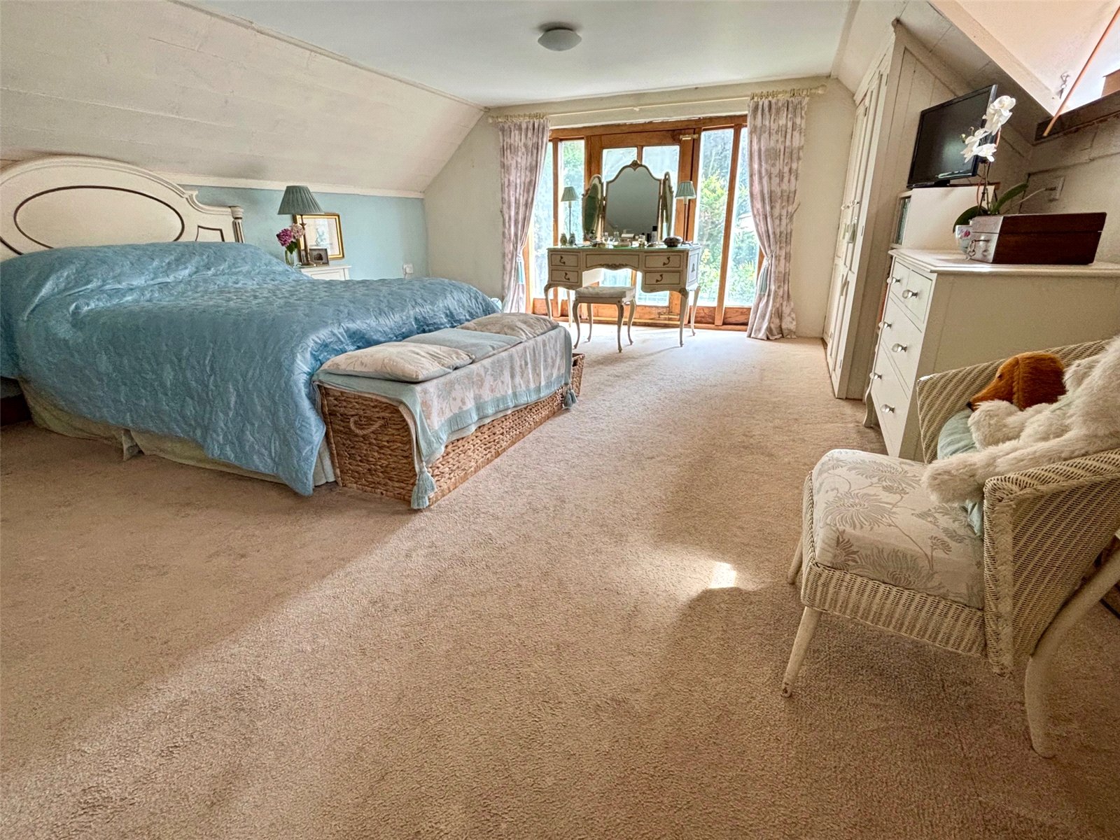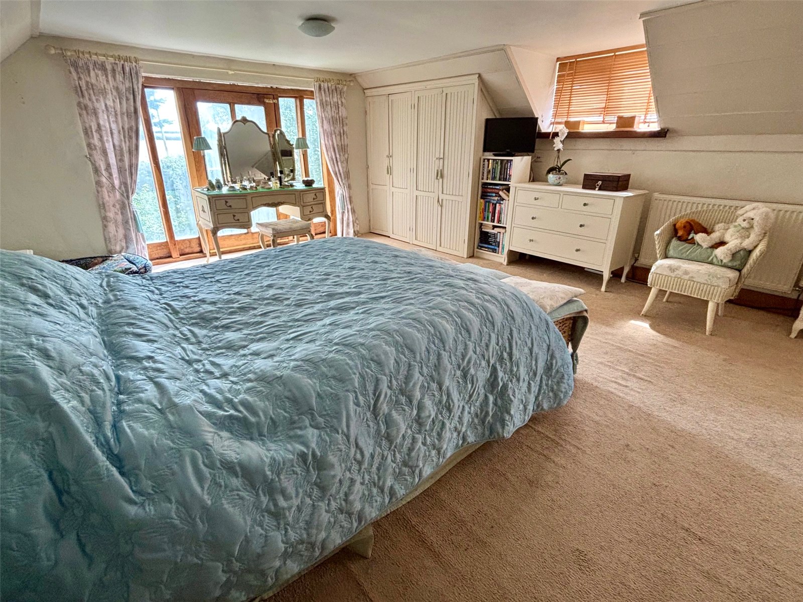 Large double bedroom with French windows and Juliet Balcony.