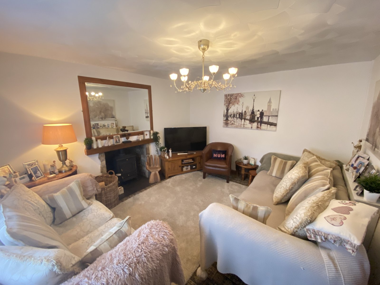 Cosy living room with D Glazed window to the front, log burner, radiator.
