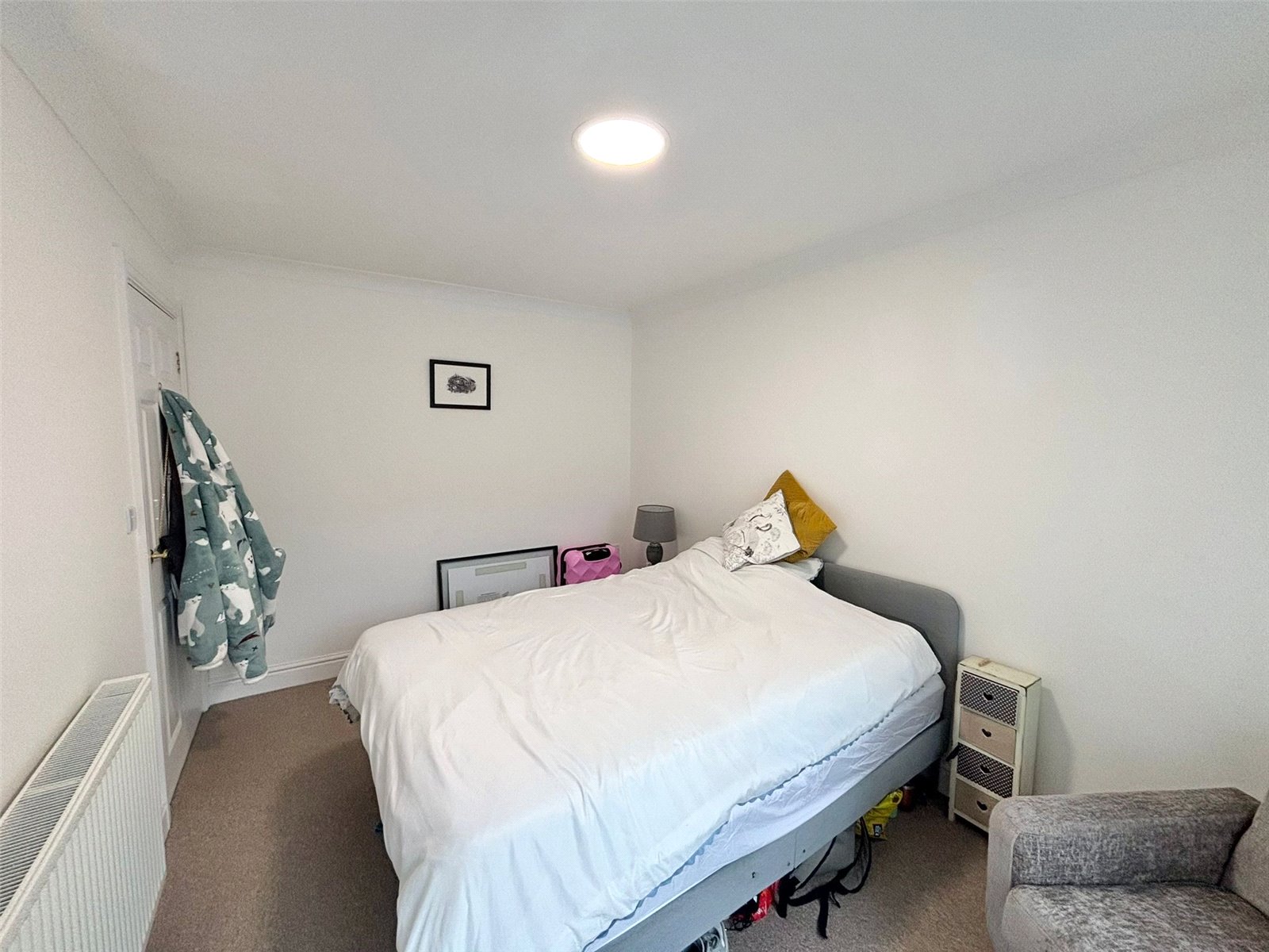 This well-appointed second-floor bedroom offers a comfortable and private retreat. Featuring ample natural light from its window, the room is decorated in a neutral palette, creating a versatile backdrop for personal touches. It comfortably accommodates a double bed and freestanding furniture, providing a practical and inviting space for rest and relaxation.