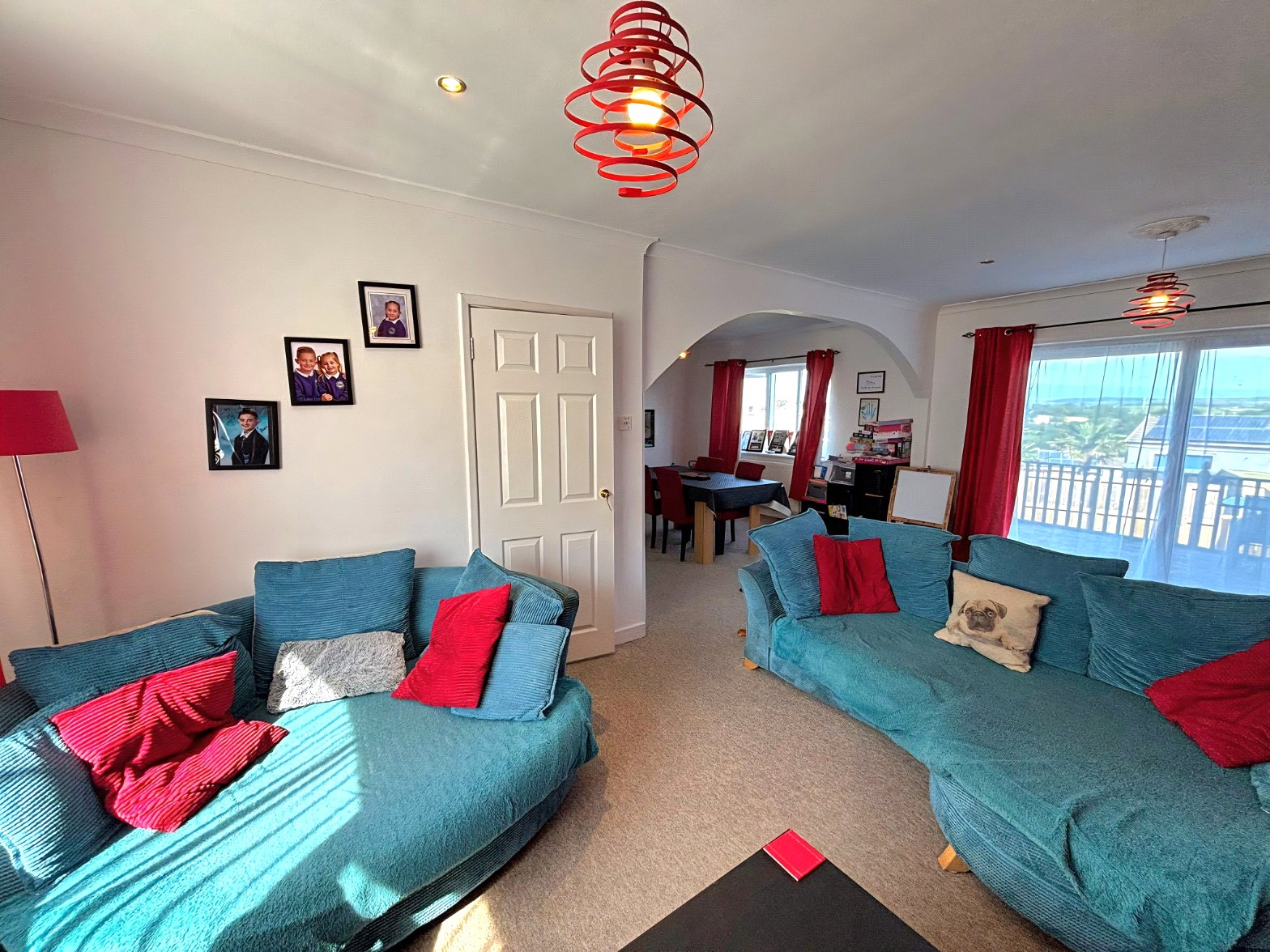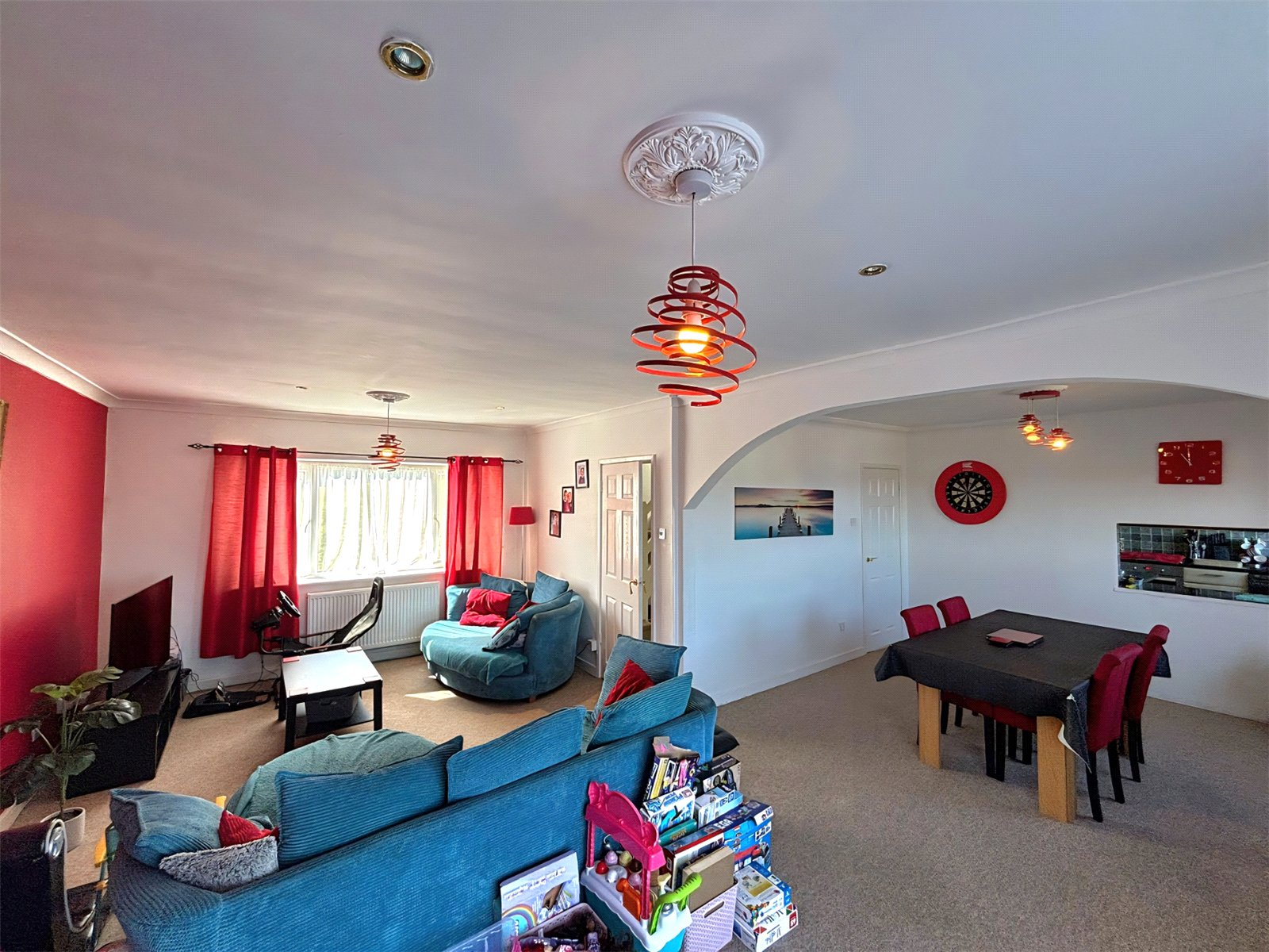 This property is accompanied by an open plan living and dining area. WIth access to the back garden through the double sliding doors that are joined with views for miles. This living area is well lit and creates the perfect space for family time whilst having a meal, games night or a relaxed evening around the TV.