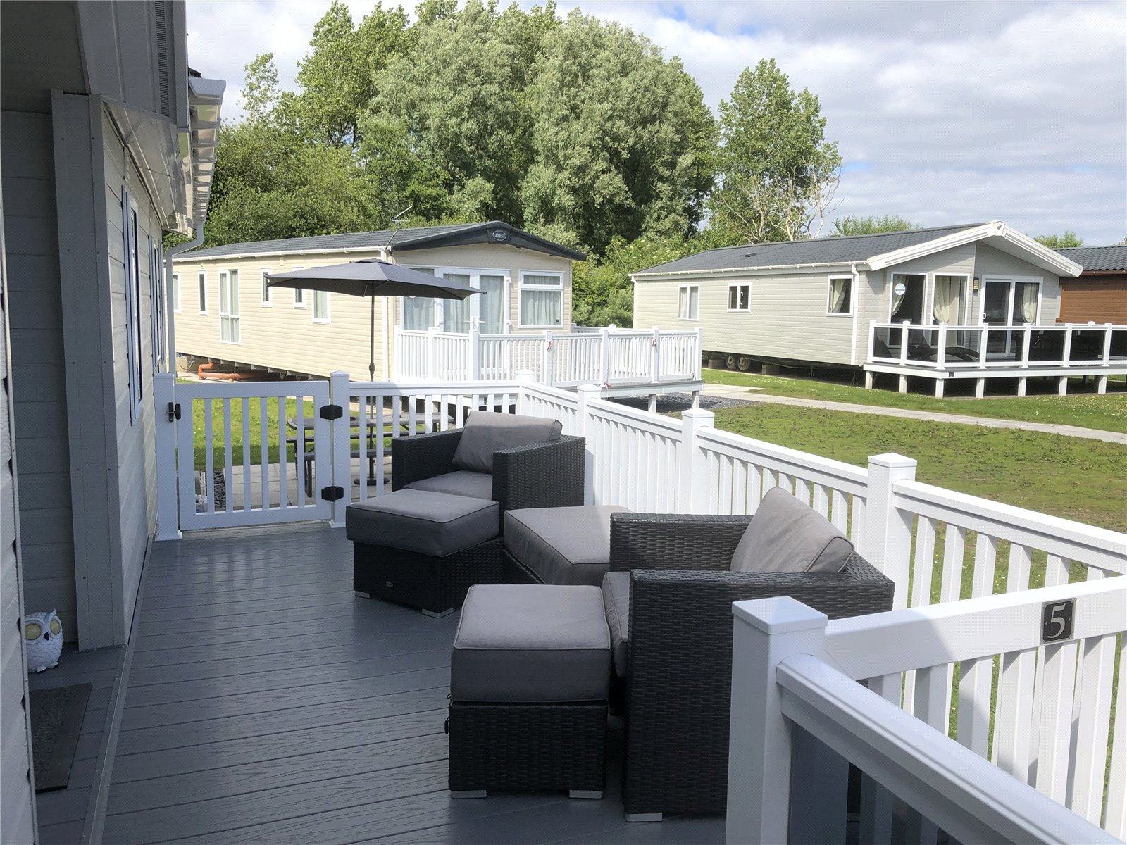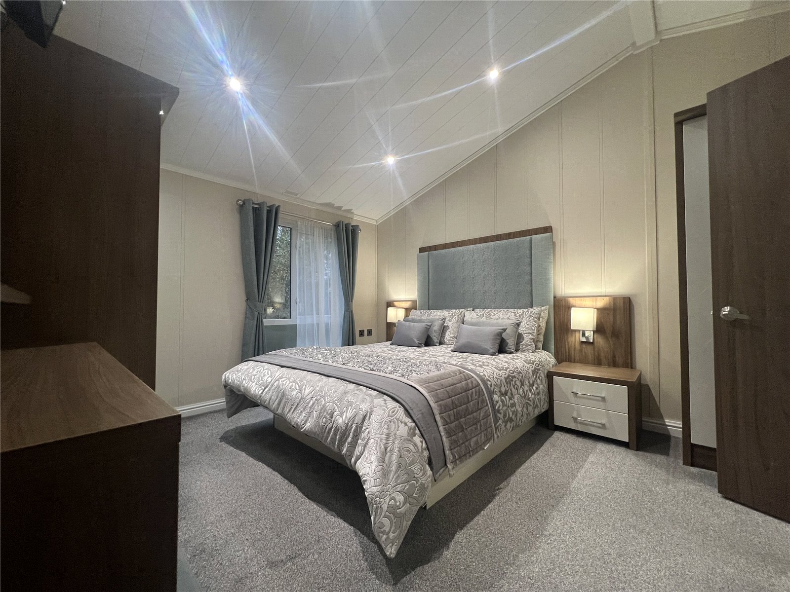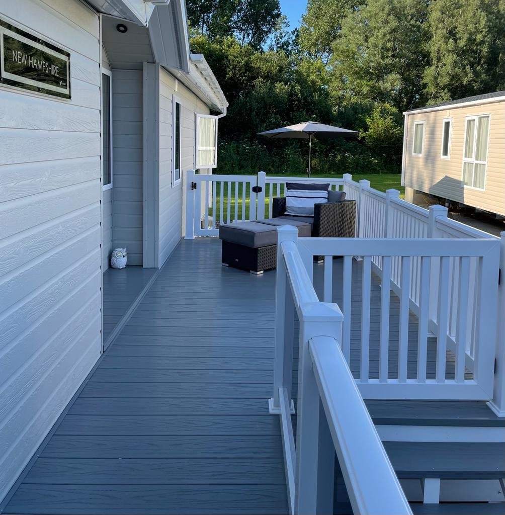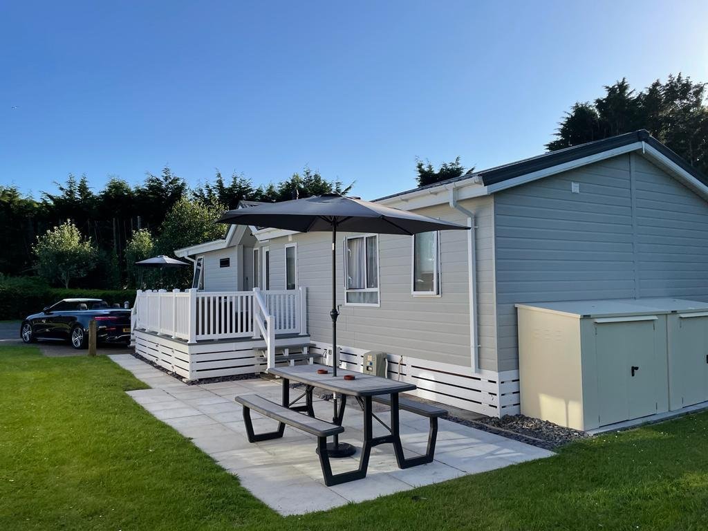 Then St. Mary's View, Kiln Park, Tenby is an immaculate Willerby "New Hampshire" lodge. New from 2019 and only utilised by one family the property is a true show-home. With an impressive front canopy and distinctive timber entrance porch inspired by classic Scandinavian lodges, the stunning New Hampshire lodge boasts a truly incredible external appeal with its wrap around decking. Once inside, the open plan living space gives this lodge its signature style of modern sophistication with luxurious curtain upholstery and fabrics, contemporary furniture in rich wood tones and an incredible feature electric fire. The contemporary feel of this lodge continues into the kitchen with the modern high gloss doors contrasting work surfaces and fitted appliances. In addition to a breakfast bar seating area, the lodge offers a separate dining area with a feature vaulted ceiling canopy. All bedrooms are sumptuously decorated, with generous amounts of storage space and high quality furniture. The master bedroom benefits from an en-suite, with a mirrored door and illuminated vanity mirror. The lovely lounge, again with vaulted ceilings is light and airy with patio doors onto the deck. There are two further bedrooms and bathroom, again all with storage. Set on a corner plot the lodge enjoys a lovely setting and benefits from gas central heating and energy efficient uPVC double glazing.