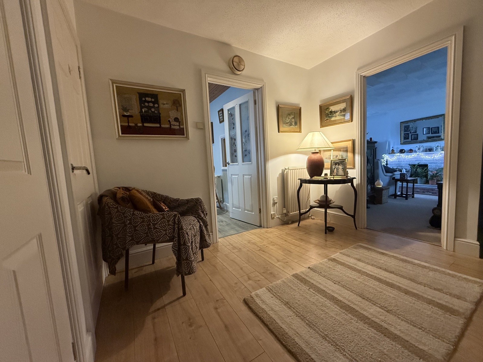 Laminate flooring, built in storage, radiator, double glazed uPVC door.